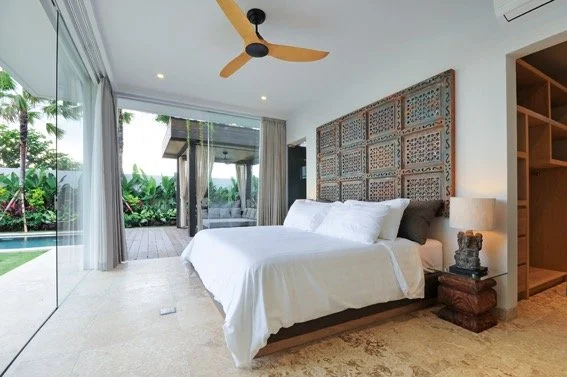 Built over two floors, the villa is clean and modern with charm and lovely design accents throughout. With 5 double bedrooms with is ample room for guests whilst the 5th bedroom could be a gym or study with panoramic views across Babakan, the quiet and residential area that is now most sought after to be within skipping distance of Batu Bolong and Echo beach’s surf spots, cafes, boutiques and restaurants whilst being quietly ensconced in greenery.