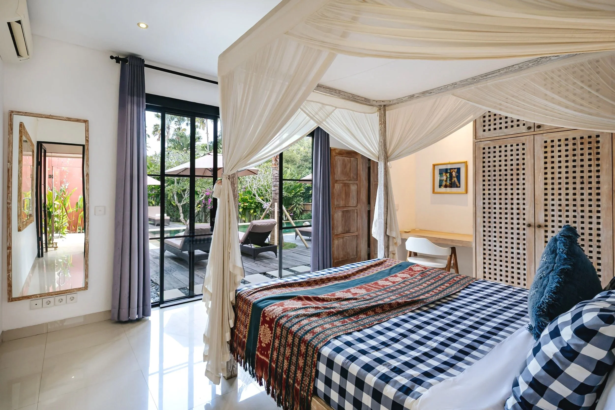 With a clean and fresh feel, this is a very comfortable villa with four bedrooms (two interconnecting) and it incorporates the charming Bali living style of before but blended with sensible design aspects to make it practical… you don’t want to do your make up in a hot outdoor bathroom but you do want the romance of an outdoor shower of course… the architect nailed these points with indoor/outdoor bathrooms making everyone happy, blending charm and practicality!