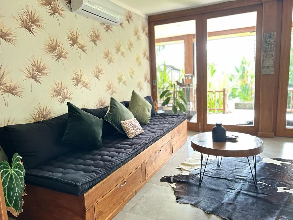 Sitting quietly in its own fabulous garden, this lovely family home has 3 bedrooms and an enclosed living space framed by a large terrace overlooking the garden ahead. The slopping lawned garden is also home to a separate Joglo that could be used as an office, a treatment room, a kids den or anything else one could wish for as an added bonus!