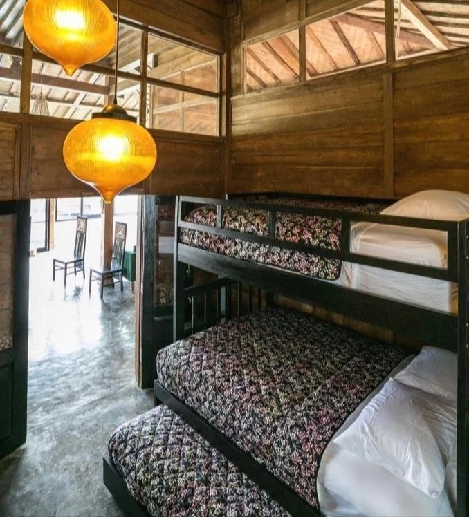 A wooden home in a fabulous location in Berawa with two double ensuite bedrooms and a bunk bed room all in main house and then a separate guest house with en suite bathroom in the garden that could be a flexible space for those working from home.
