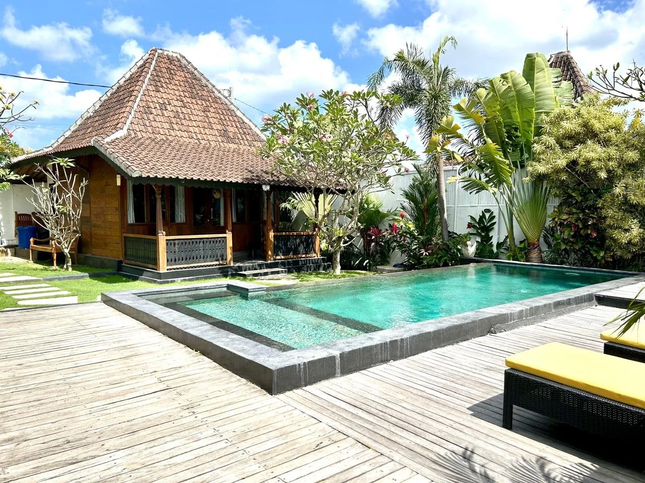 This beautiful Joglo style villa has been built by the owner with style and comfort in mind with true Indonesian accents used throughout