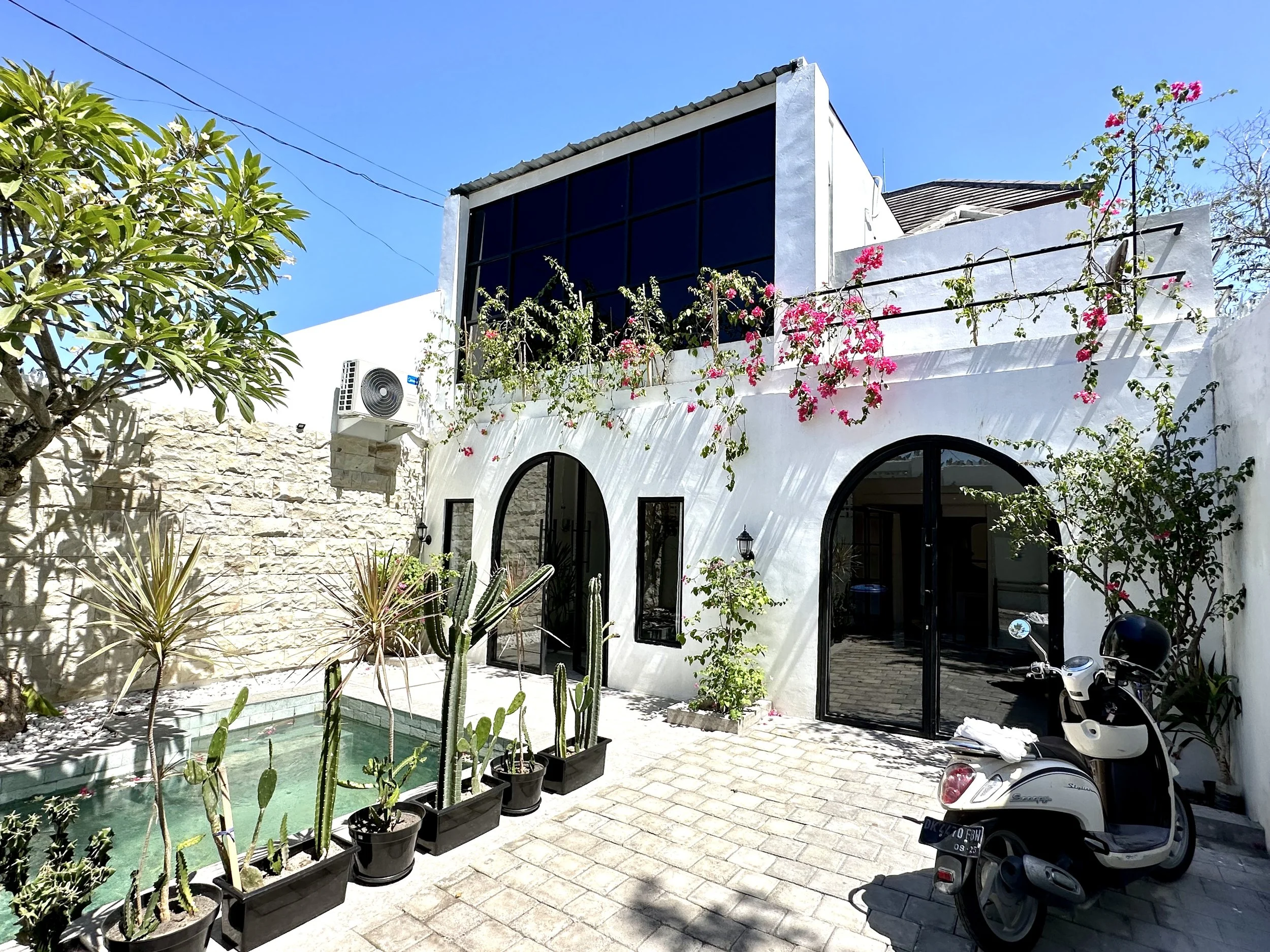 Outside, you'll discover a delightful pool and off-street parking for a car and motorbikes.