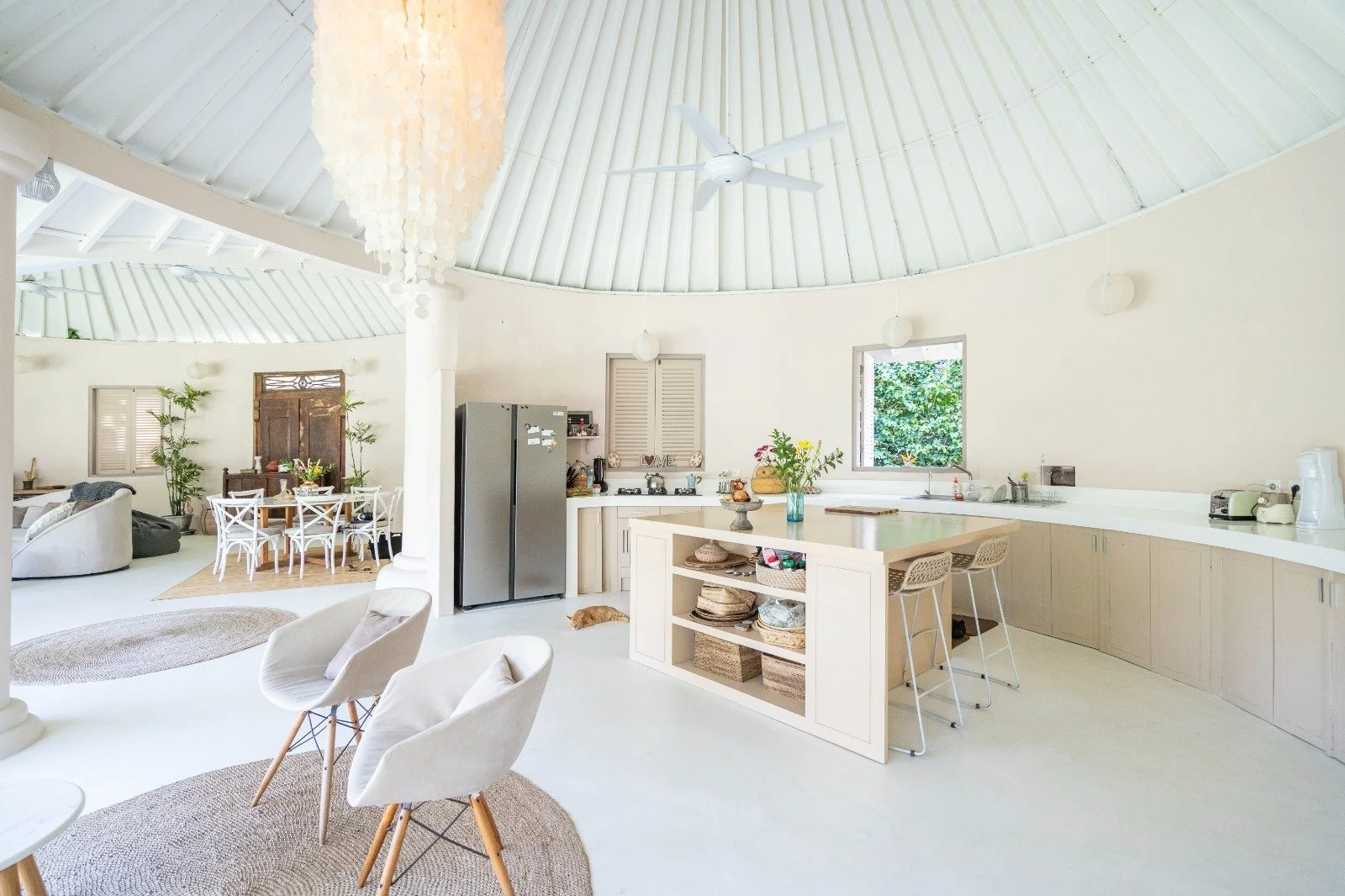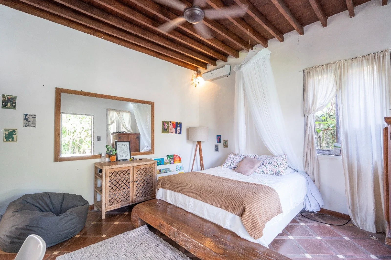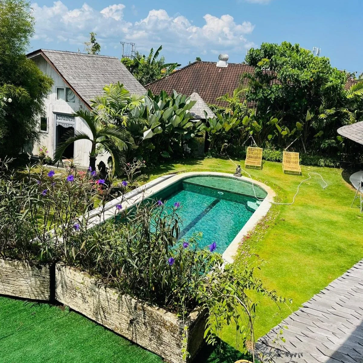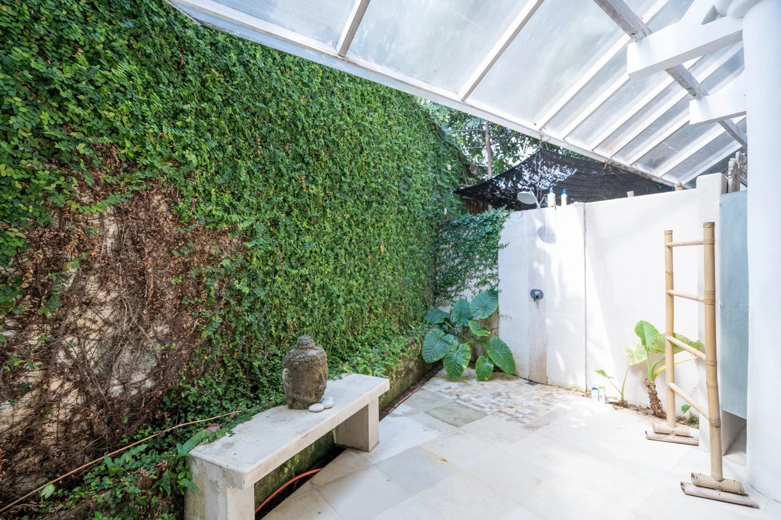 A 4 bedrooms villa in quiet location but walking distance to cafes, gym, Liga tennis etc. 5 minutes from French school, ProEd, Canggu School, and Montessori School.