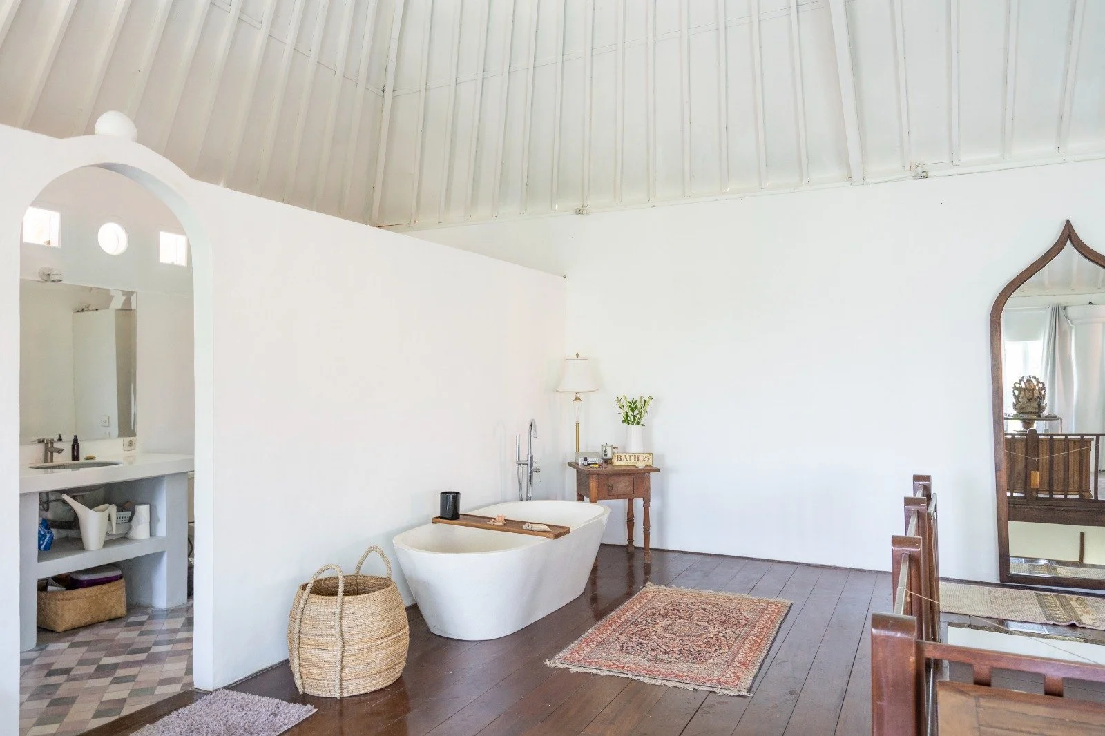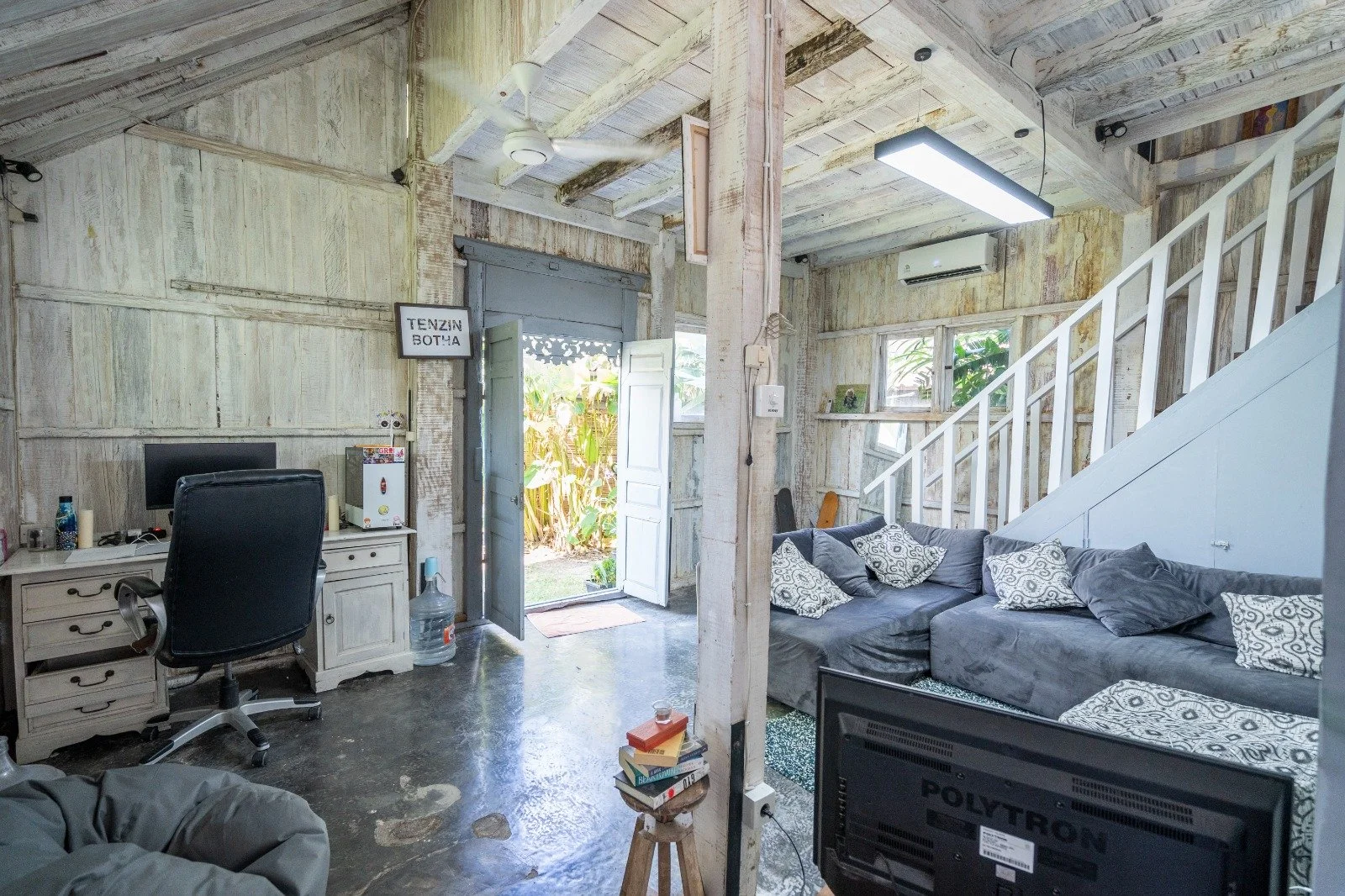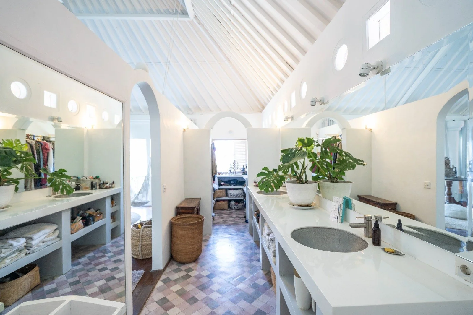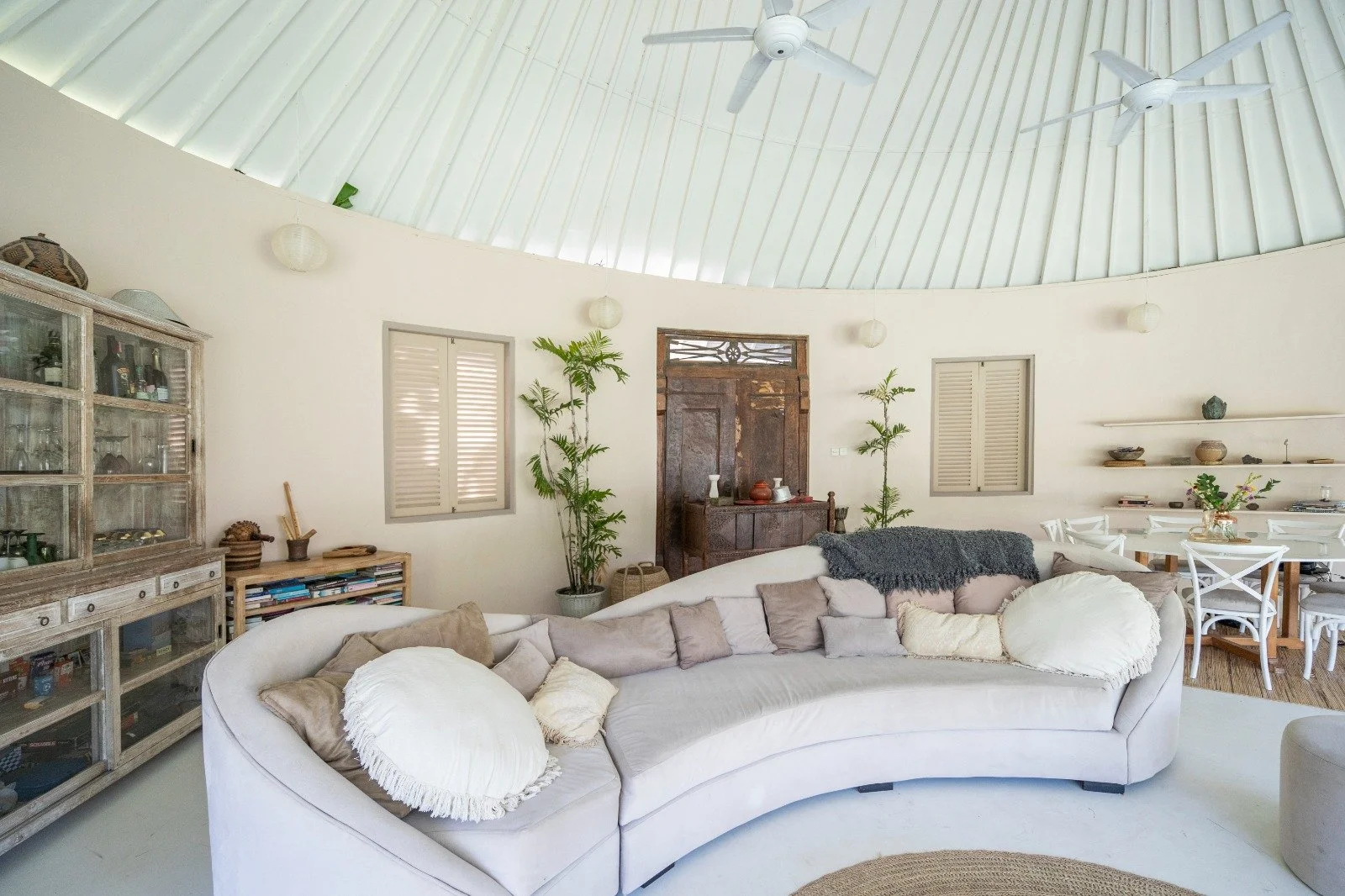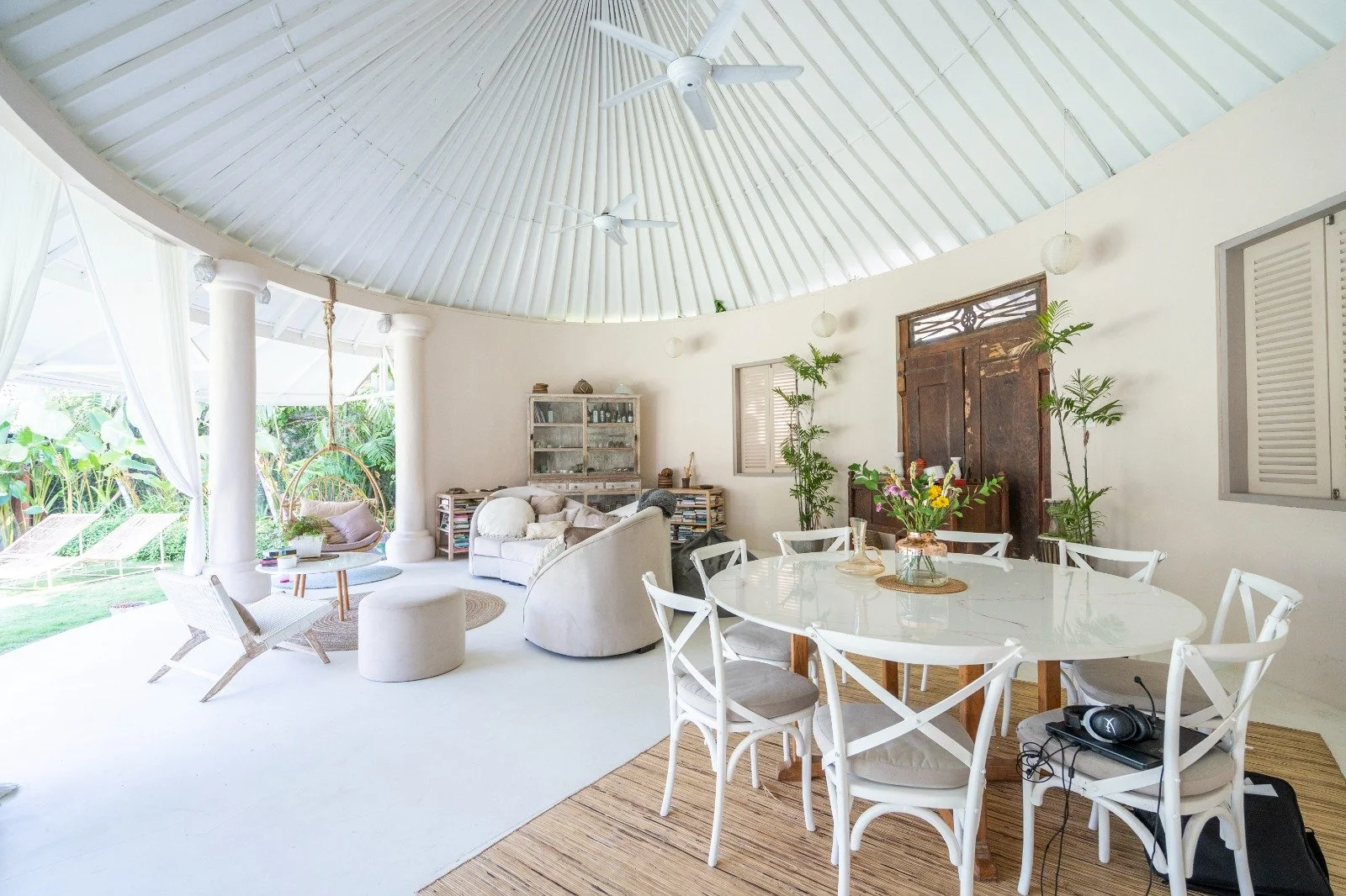 A 4 bedrooms villa in quiet location but walking distance to cafes, gym, Liga tennis etc. 5 minutes from French school, ProEd, Canggu School, and Montessori School.