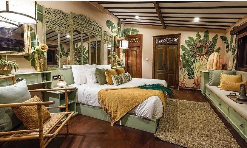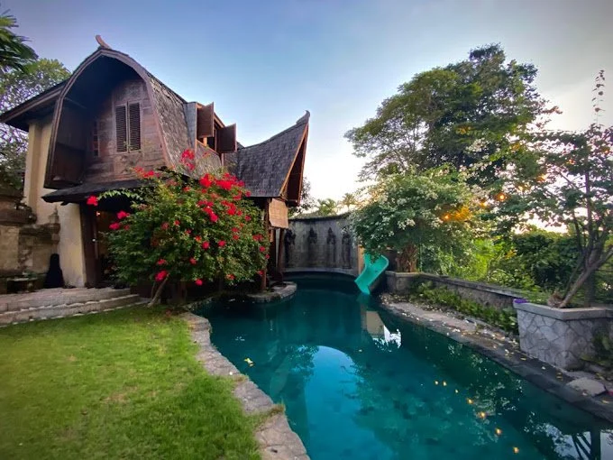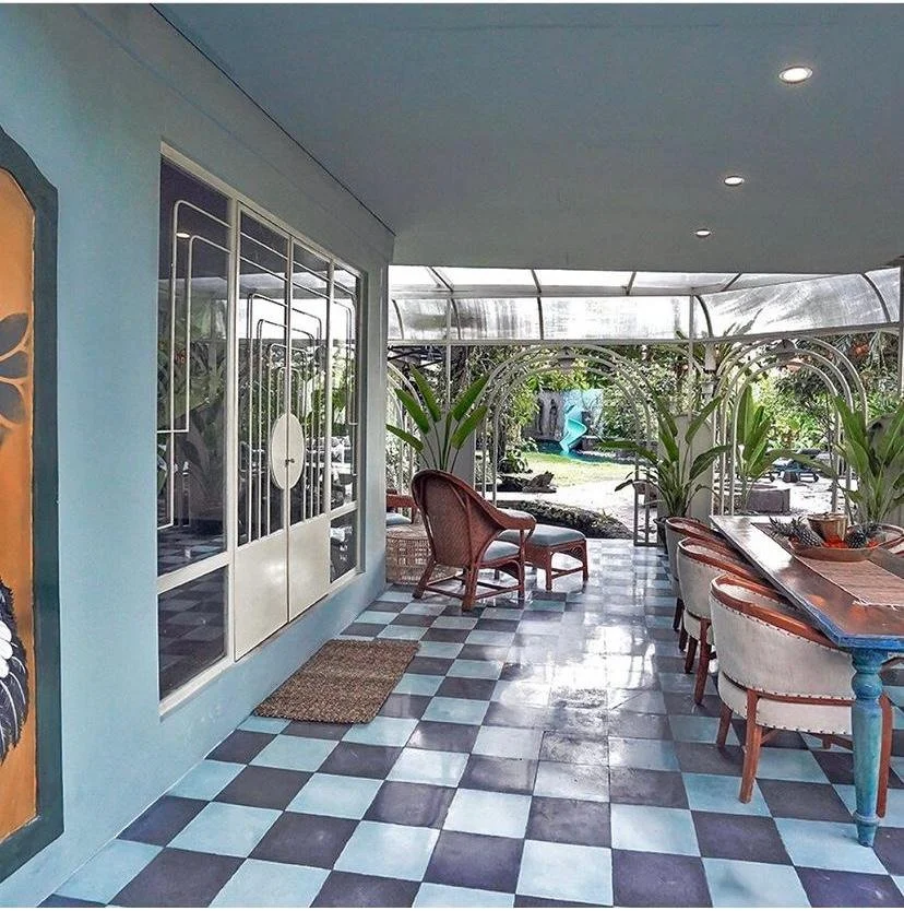 Villa Melu… rich in colour, style and design that all blend seamlessly in an eclectic fashion to create an interesting family home surrounded by rice paddies in a quiet enclave of Canggu.