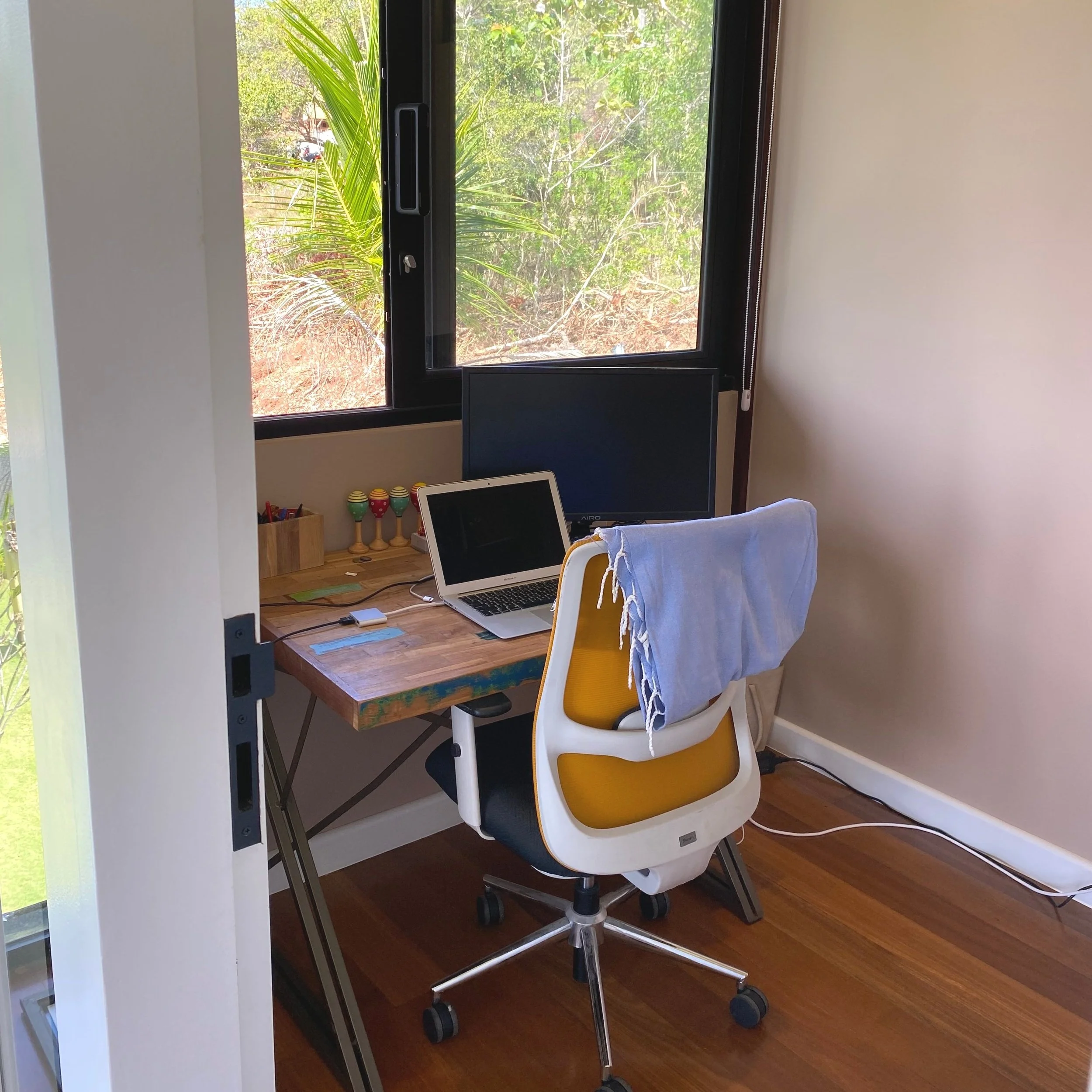 The house is spacious and well designed with 3 double bedrooms with ensuite bathrooms built over two floors with uninterrupted green and ocean views ahead from the decked terrace for sundowners after a long day in the waves. A well appointed kitchen and dining area looking out onto the lawned garden and pool, this is an ideal home for those with children of all ages, given that all the accommodation is under one roof, which is a rarity in Uluwatu as many places are built with separate joglos, this is a proper family home, available to rent whilst the owners are away.