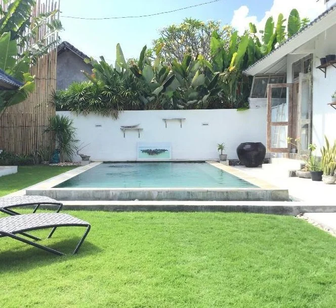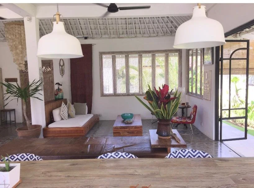 Perfect for families, designed in relaxed, barefoot chic style and enclosed with three bedrooms under one roof. Two bedrooms downstairs share a jack and jill bathroom, whilst the master upstairs has its own with a terrace and views over the glinting green rice fields ahead with a cool breeze straight from the fields flowing through.