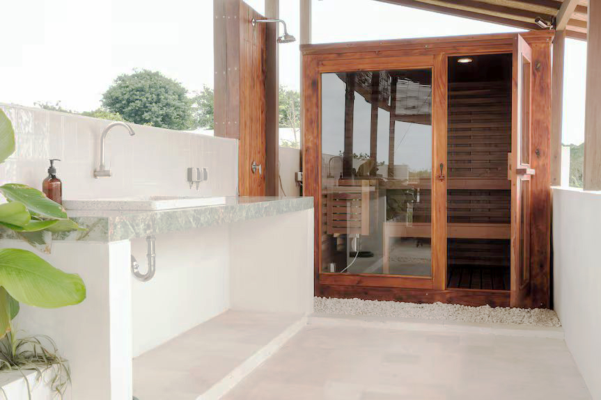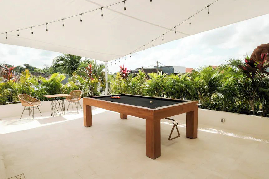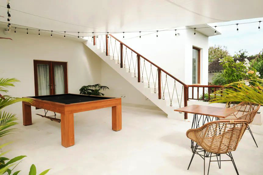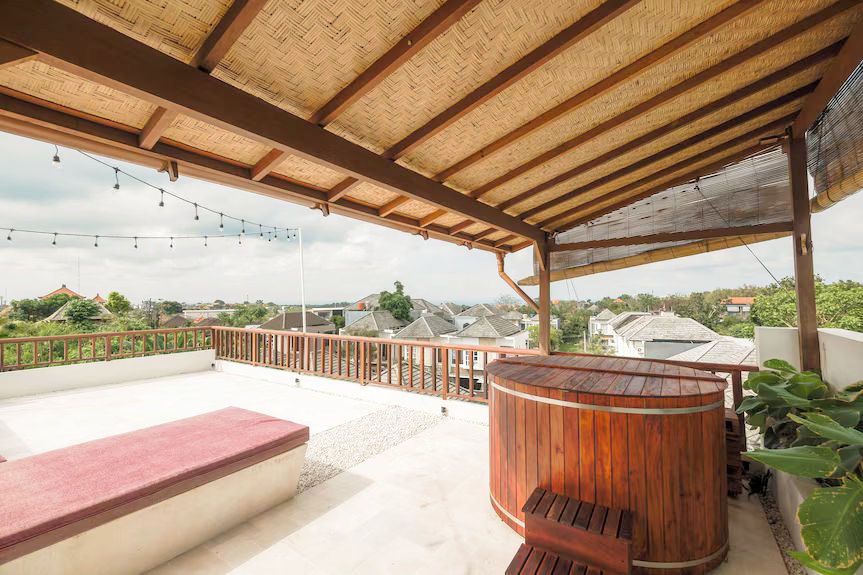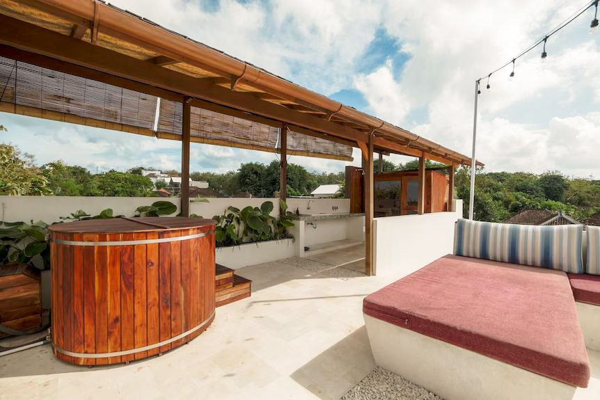 The villa offers a good balance of indoor and outdoor living. Spend your day by the private pool, hang out on the rooftop with open ocean and GWK views, or unwind in the sauna and ice bath after a day at the beach or surfing. There’s also a pool table for casual indoor entertainment.