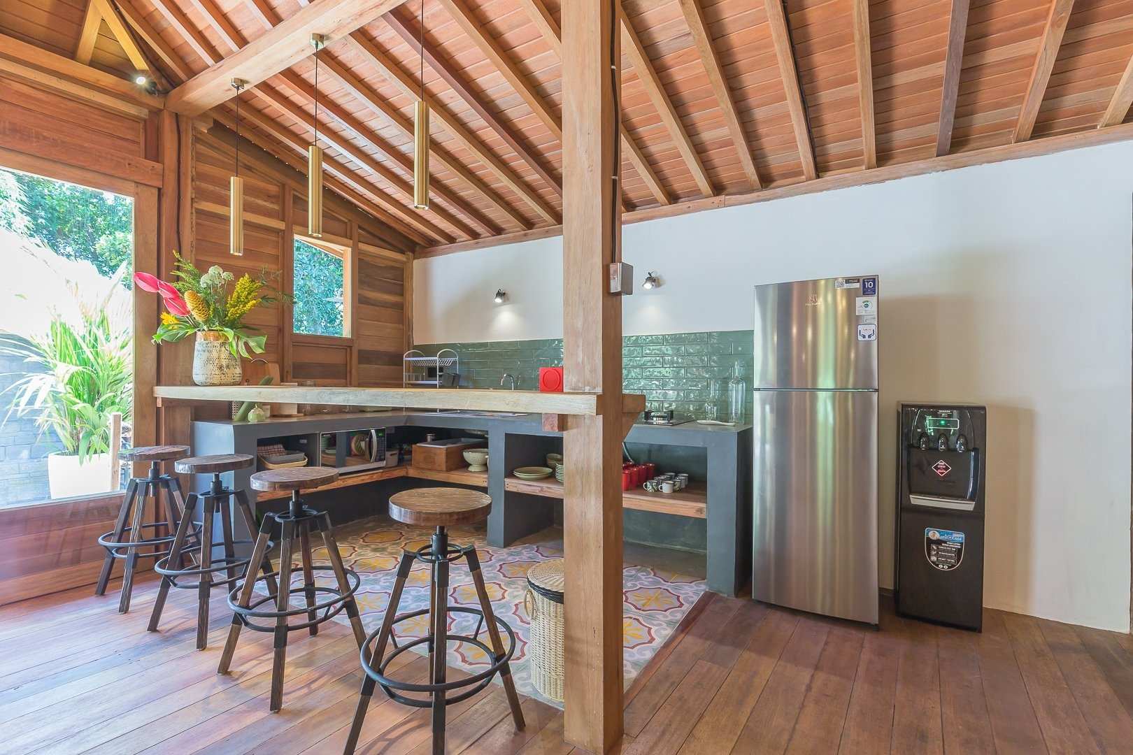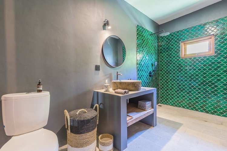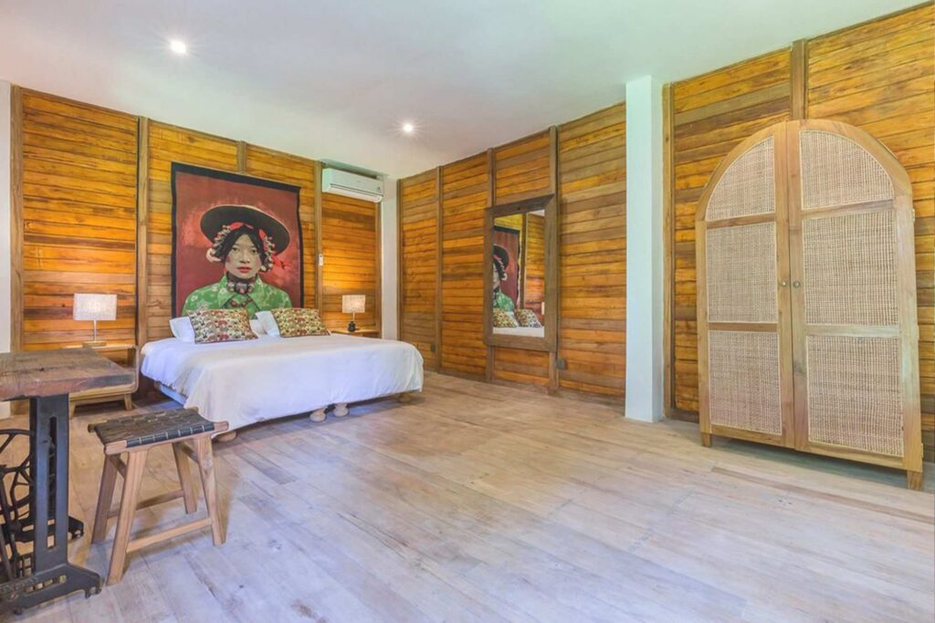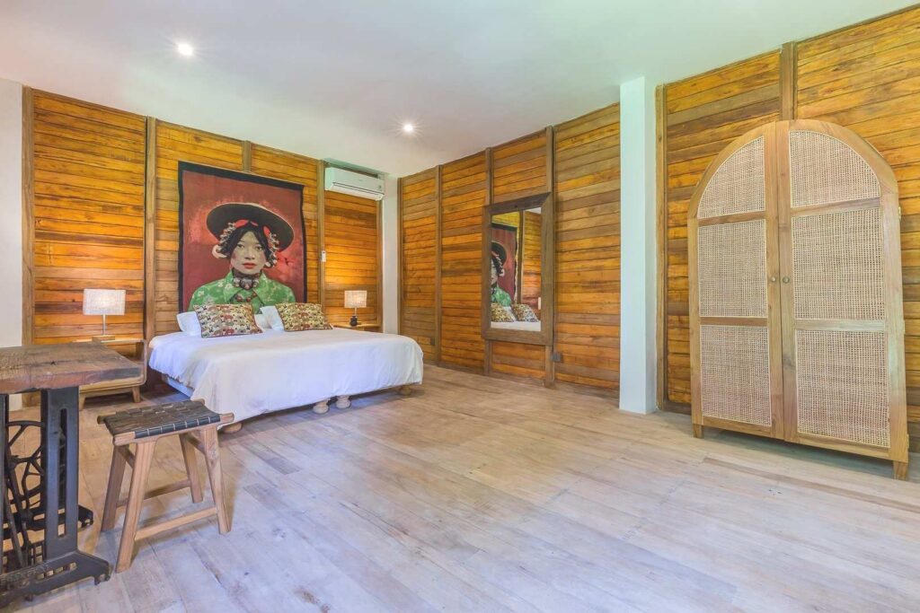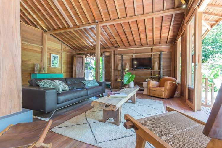 Two separate dwellings offer privacy and ease to have guests stay, with two en suite bedrooms in the main house behind the open planned sitting room, kitchen and dining area that have door to close off in the wet season when aircon is preferred, or keep wide open to enjoy the sounds of nature. An admirable build, with successfully ambitious designs for an impressive swimming pool, again keeping in theme of natural materials used throughout, that leads to the guest house with two en suite bedrooms and a lovely lawned area below the pool. This home works better for those with older children as the Robinson Crusoe style provides exciting adventures for all.