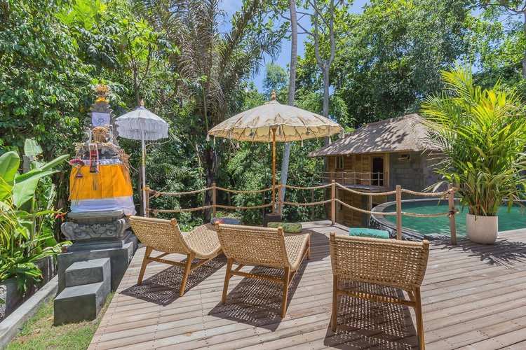 4 en suite bedrooms; enclosed sitting room kitchen dining; decked terrace and Sunbeds overlooking pool; garden. There is no car access once you reach the gang off Tumbak bayu so this is only an option for those that use bikes or are happy to park nearby.
