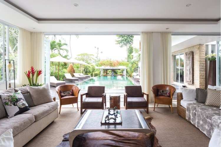 With a total of six ensuite bedrooms and two well-equipped kitchens, the property provides ample space and convenience. There is a large enclosed dining/living room, an office and a gym.