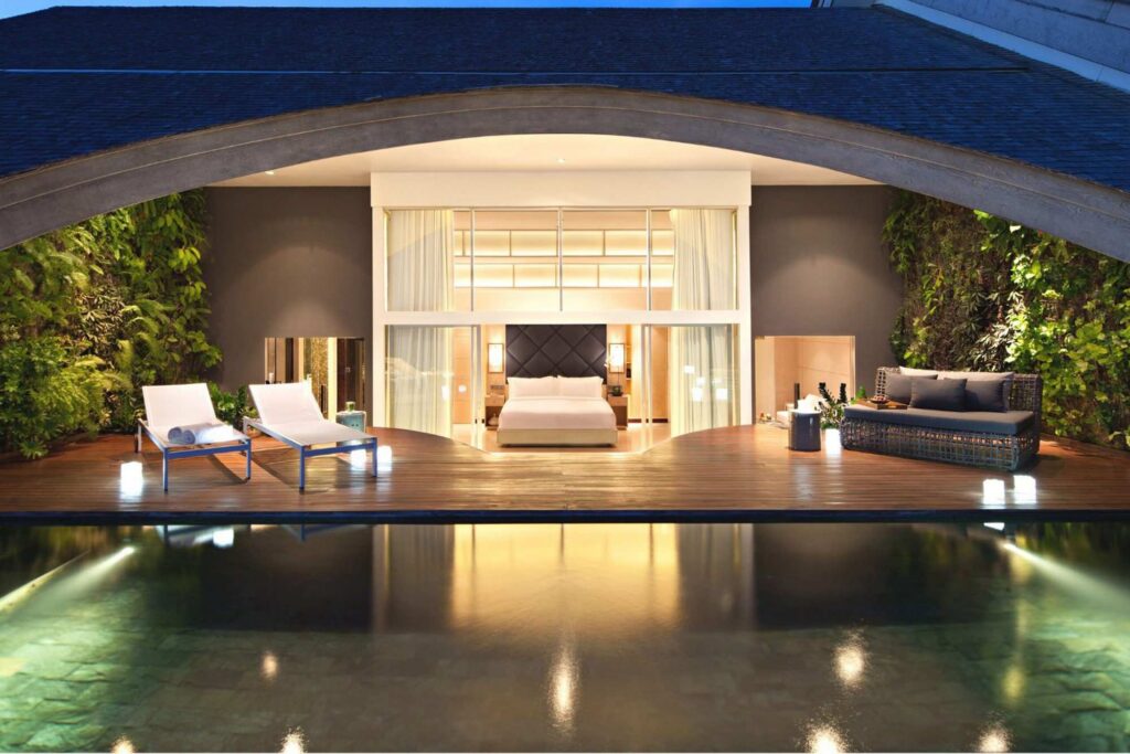 This particular penthouse is a 3 bedroom duplex overlooking the waves with a private roof top swimming pool. High up in the clouds in peace and quiet, yet right in the hub of the action, the penthouses became sought after for some to live in full time finding no other comparable apartment option on the island, but equally drawn by the cool bare-foot chic hotel below that services the penthouse and allows each owner the benefits.