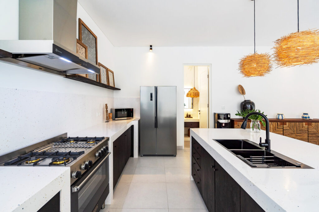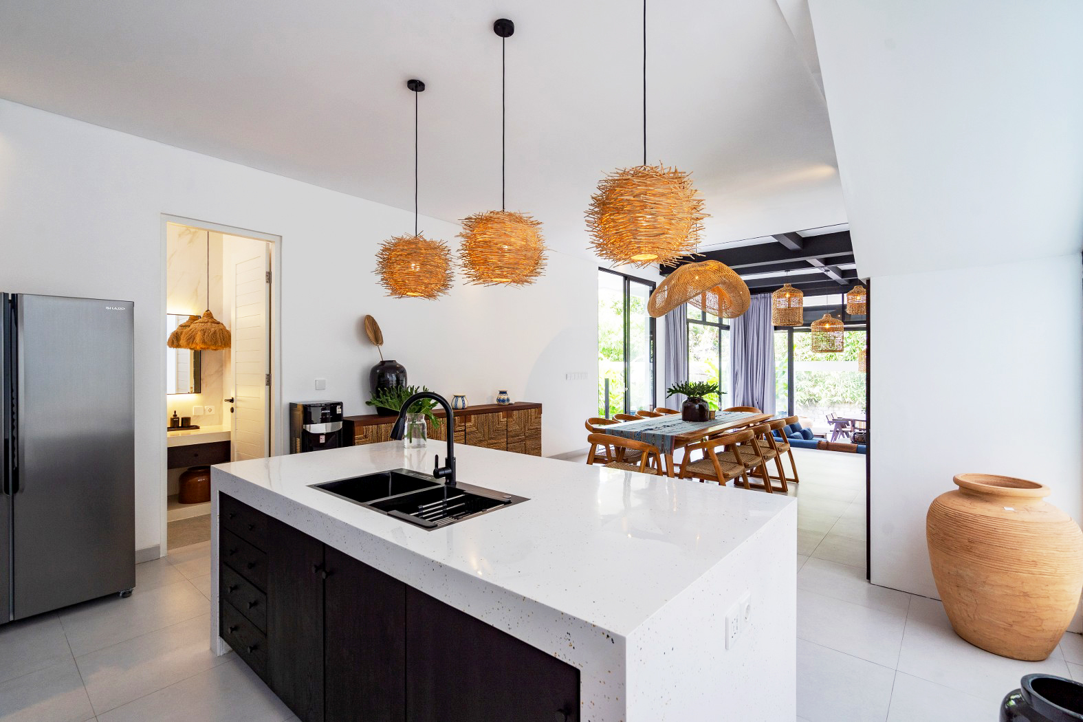 The open-plan layout seamlessly connects the living, dining, and fully equipped kitchen area, while a separate enclosed living and dining space adds versatility to the floor plan—perfect for tropical indoor-outdoor living. Each room is fitted with air conditioning and wired with Cat 6 cabling for strong internet connectivity, supported by a central Wi-Fi system.
