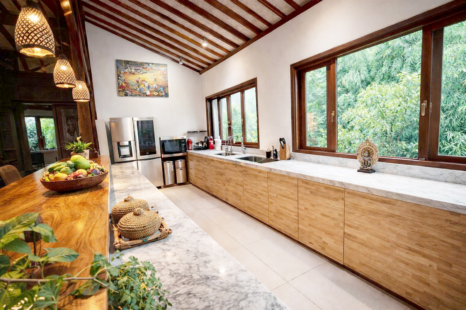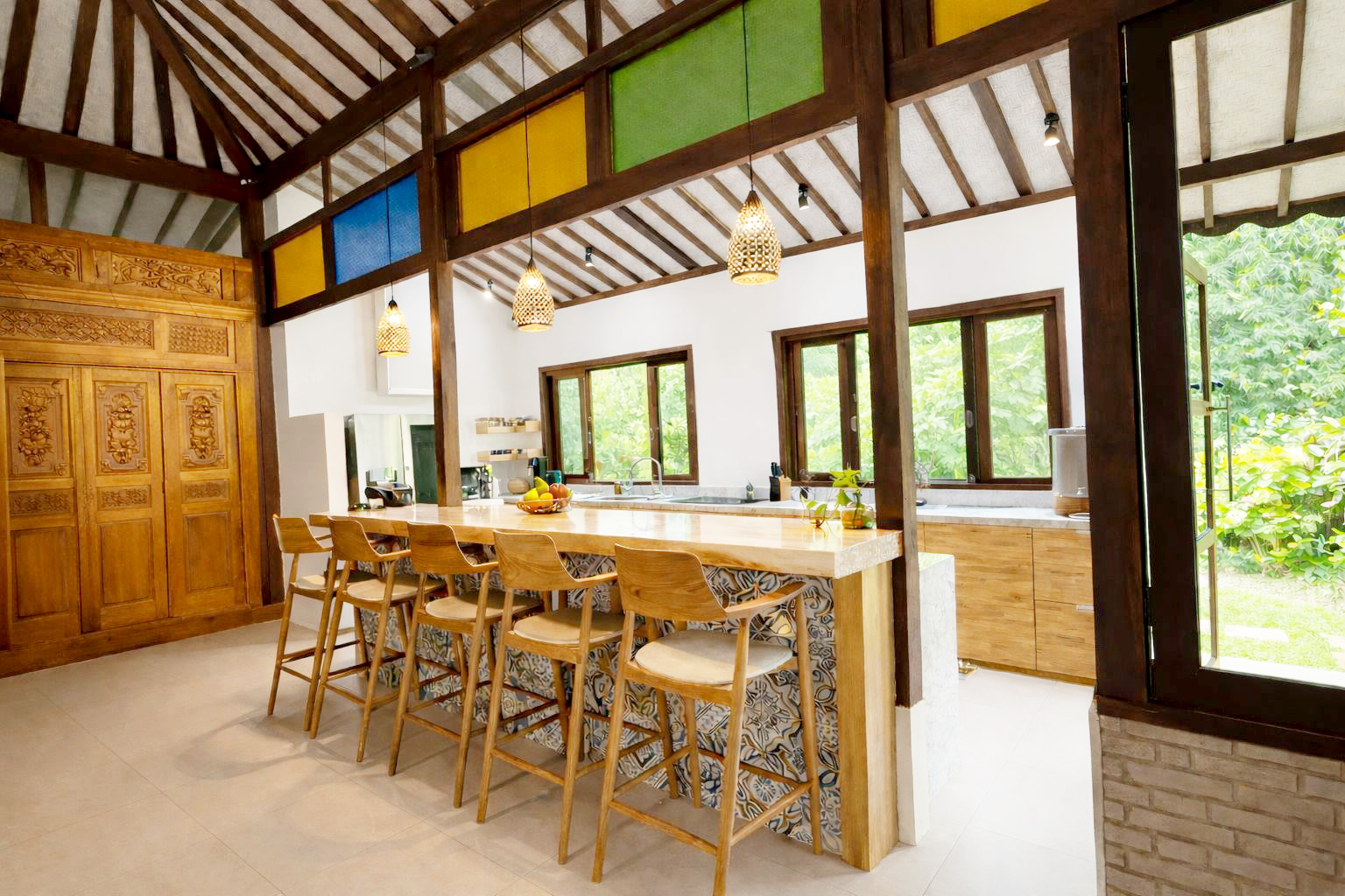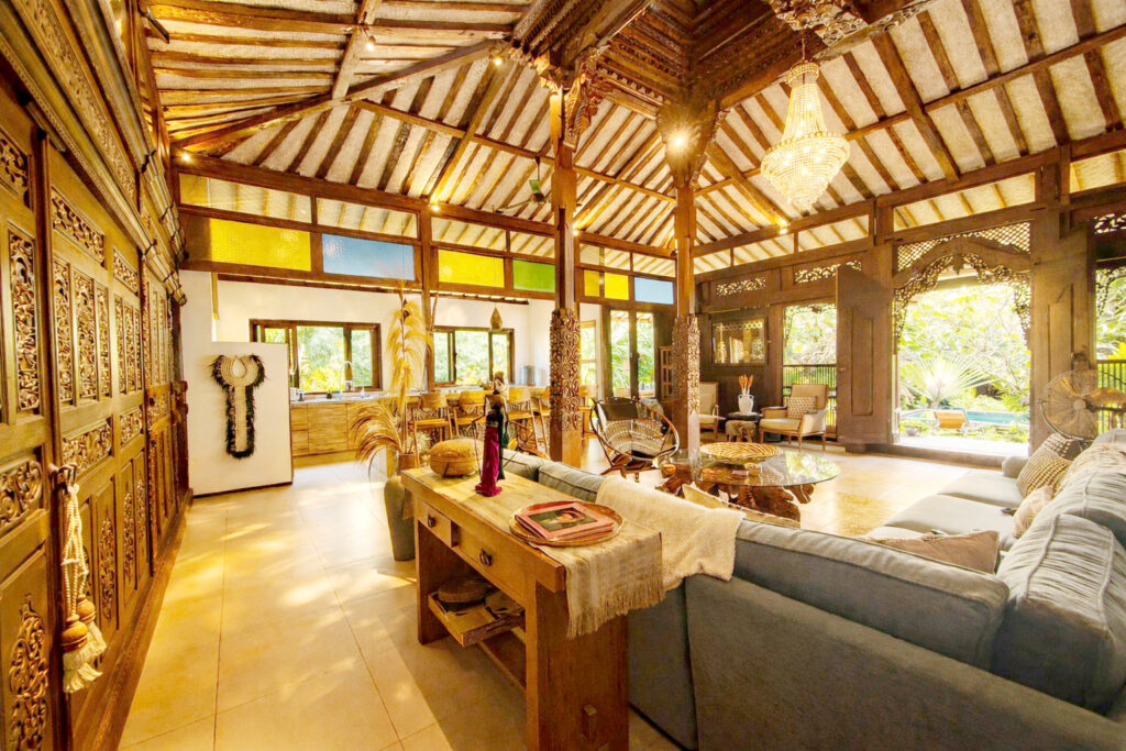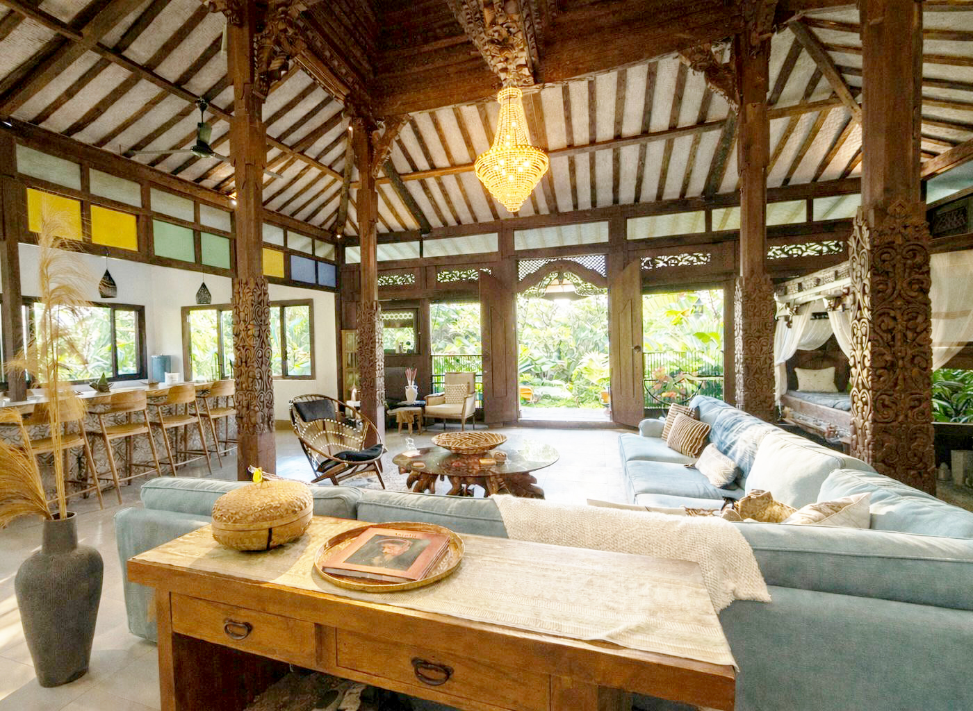 This enchanting property preserves a 115-year-old royal family joglo, adorned with intricate carvings, while seamlessly integrating modern comforts for a tropical retreat the whole family can enjoy.
