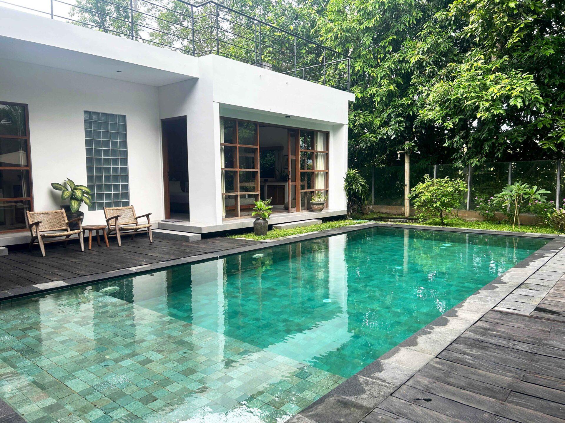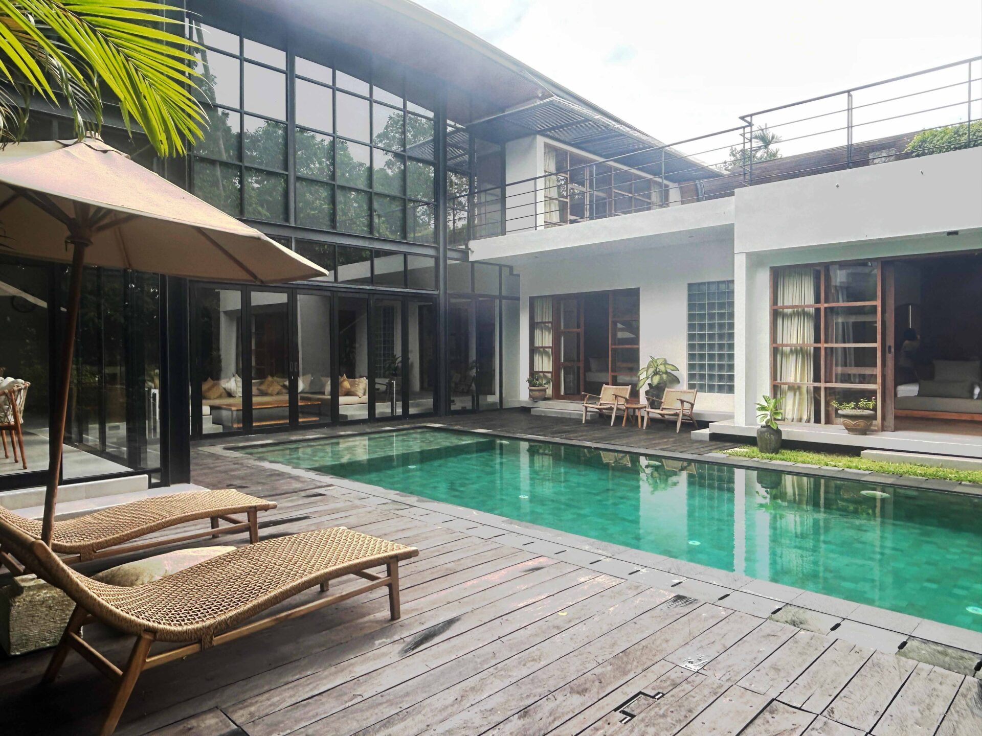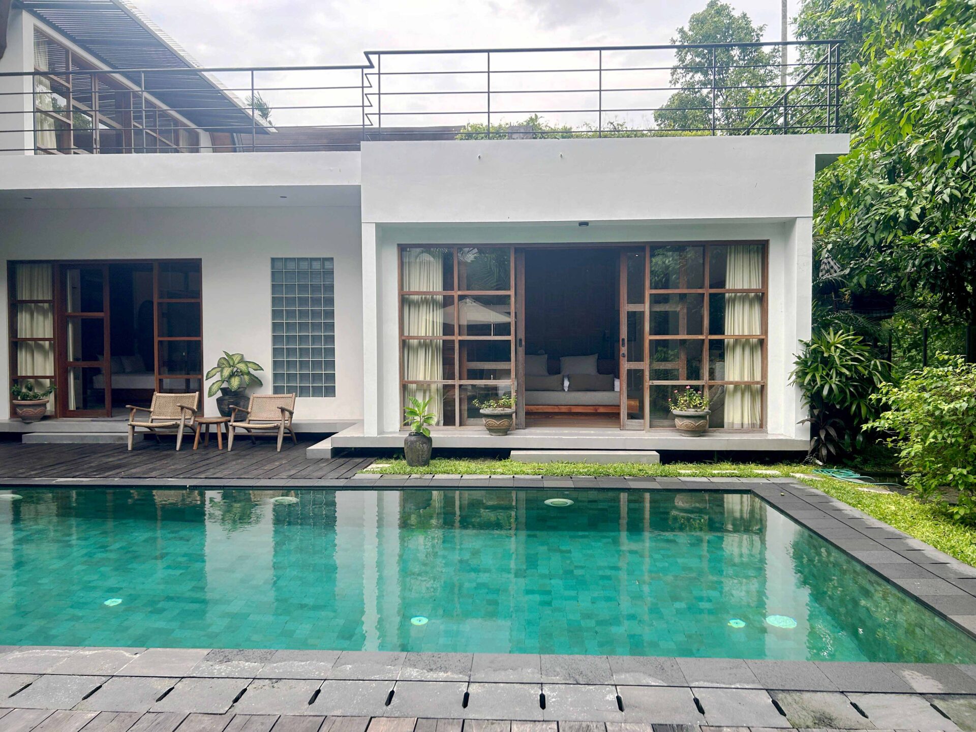 A captivating 4-bedroom villa that currently functions as a serene retreat with 3 bedrooms and an inviting TV room. Nestled amidst lush rice fields and alongside a tranquil river, this home harmonizes natural beauty with modern living. The spacious enclosed living area, adorned with high ceilings, creates an open ambiance perfect for relaxation and entertaining. Step outside to enjoy the refreshing outdoor pool, ideal for soaking up the sun.