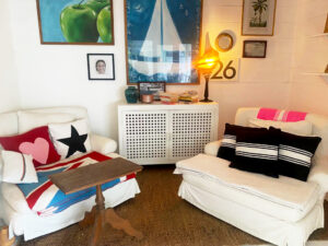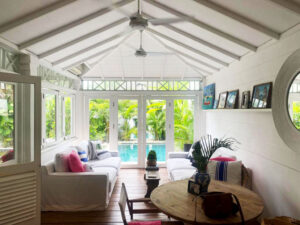 A joglo which is an Indonesian style house that is a symbol of nobility in Javanese culture built out of teak. For those that don’t feel its hot enough in Bali there is a hammam / steam room to enjoy after long lazy days in the freeform pool. Furnished with a natural colour palette with impressive art work working in the rich historical tapestry of Indonesia. Soft lighting throughout make this a romantic evening home with rice field views throughout the day as far as the eye can see. Well-chosen tiles add interest and colour pop in the bathrooms and both bedrooms are large doubles.