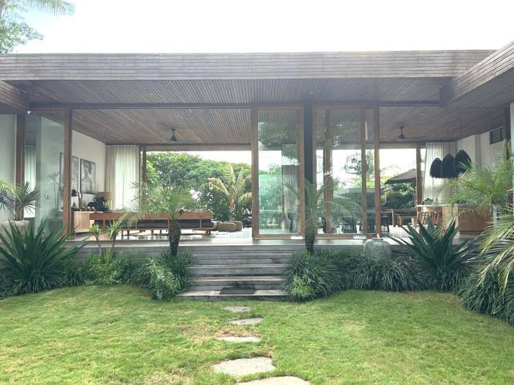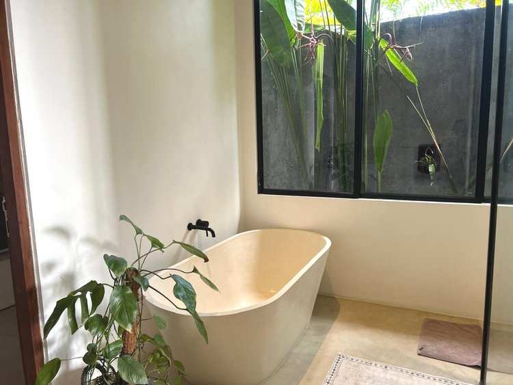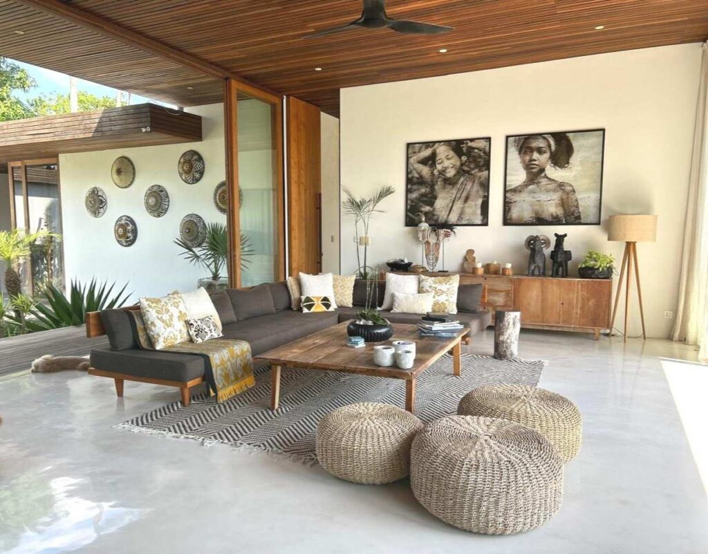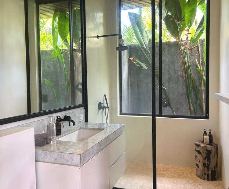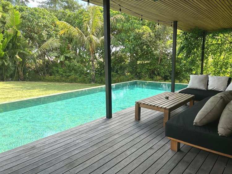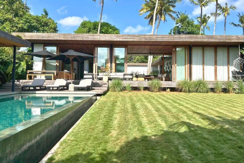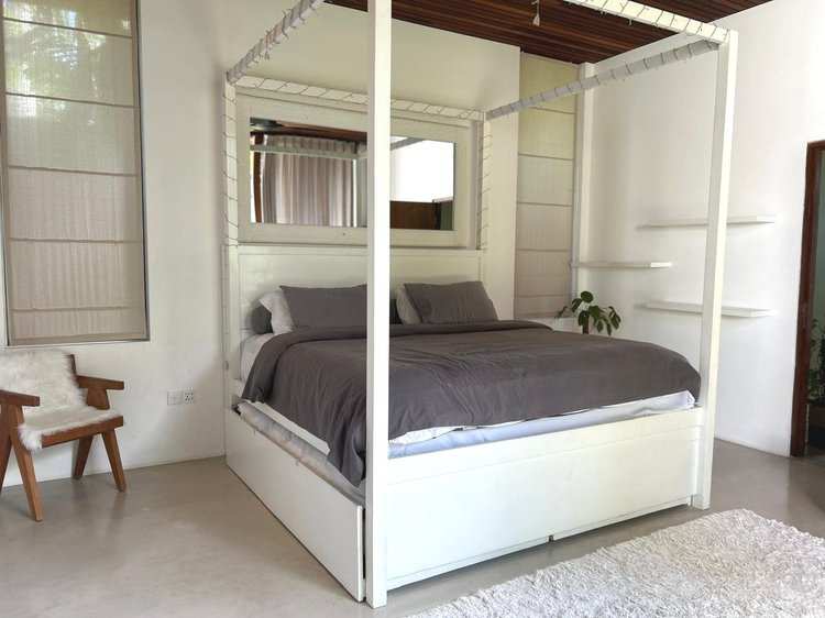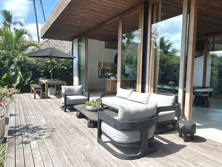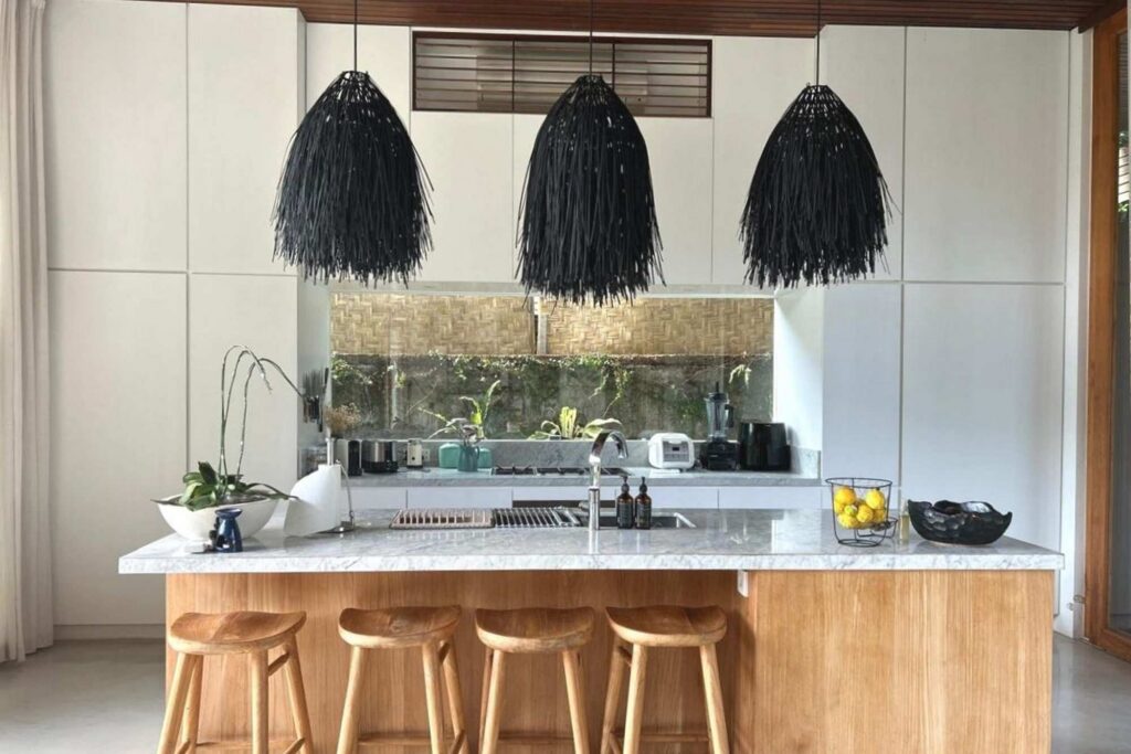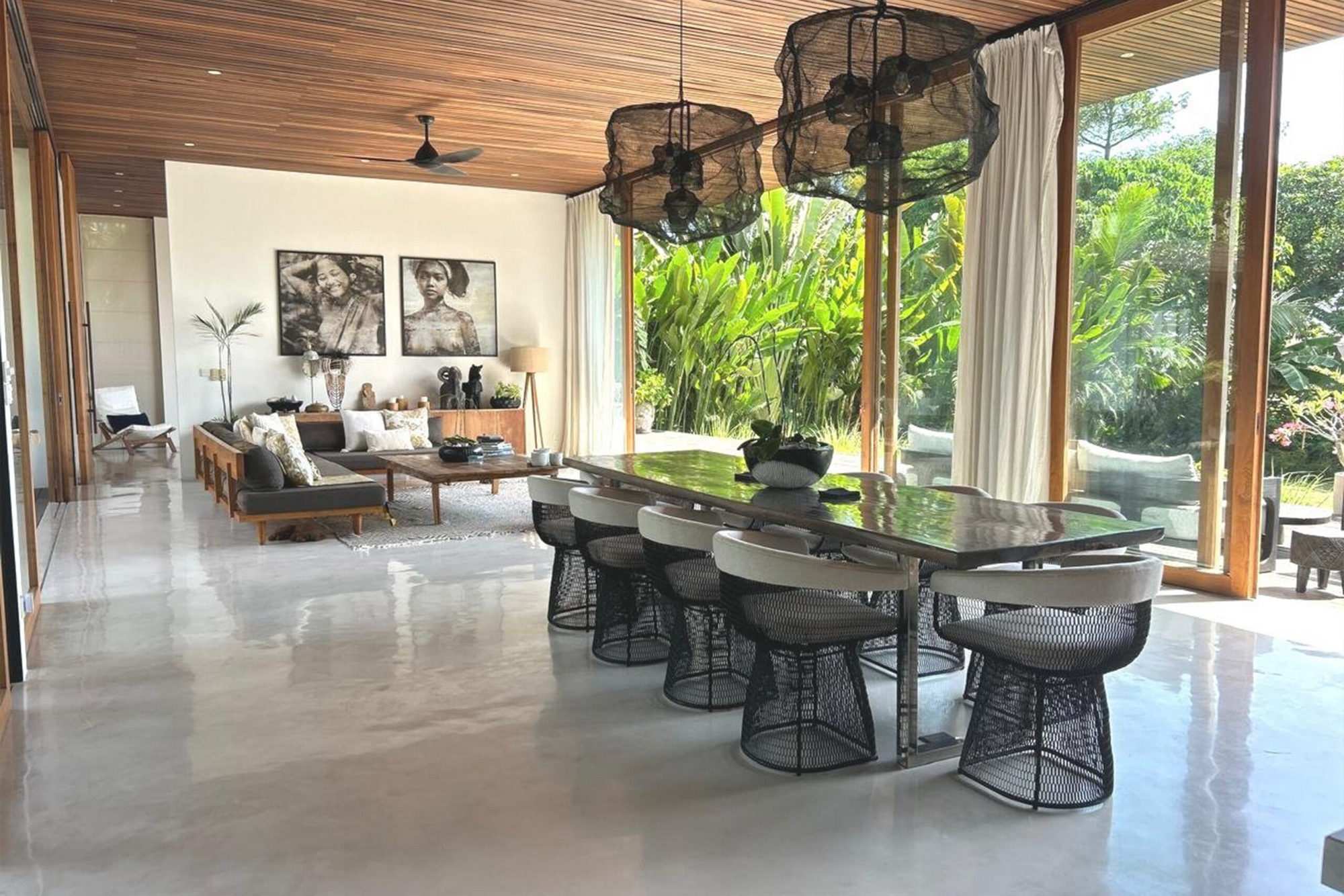 The kitchen is fully fitted with modern high end appliances with a dining table seating 8 as well as a separate tv room or third bedroom. Neutral in style, homely in feel… a perfect landing spot for those arriving in Bali looking for their long term home, or equally a sanctuary enjoyable for all ages on holiday!