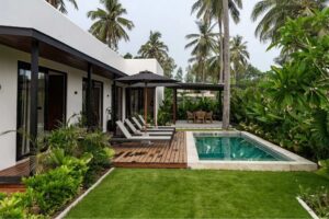 A neutral color palette ensures it blends in with the beautiful surrounding nature.