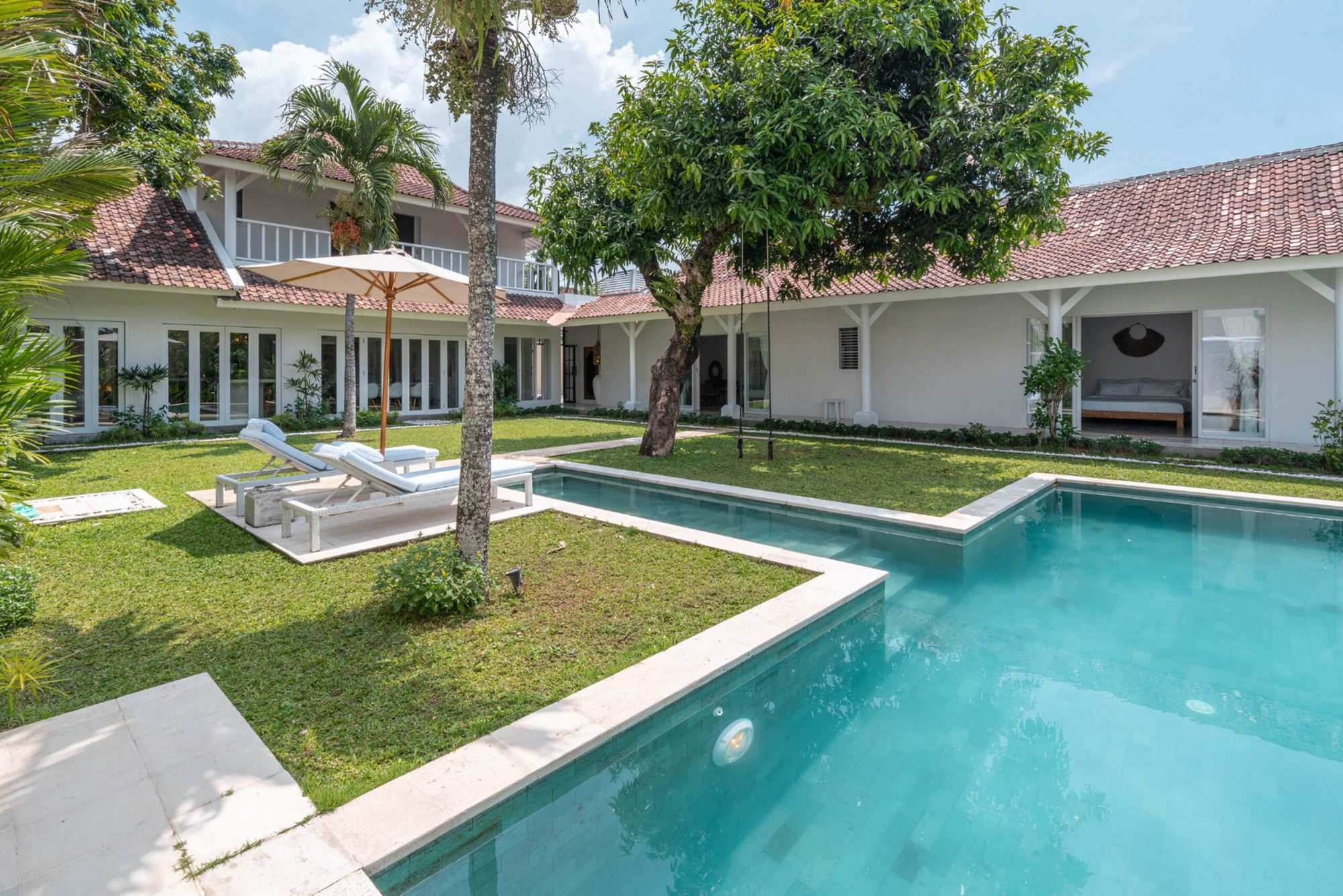 This newly renovated 5 bedroom villa nestled in quiet Padonan has just been fully renovated to welcome a new family to enjoy the green open spaces and views. Sitting a top a ridge, there’s always a cool breeze whistling through the garden and pool area. In neutral design and spacious layout this villa is a perfect spot for those that want easy access to everything but want to enjoy Bali’s beauty.