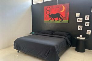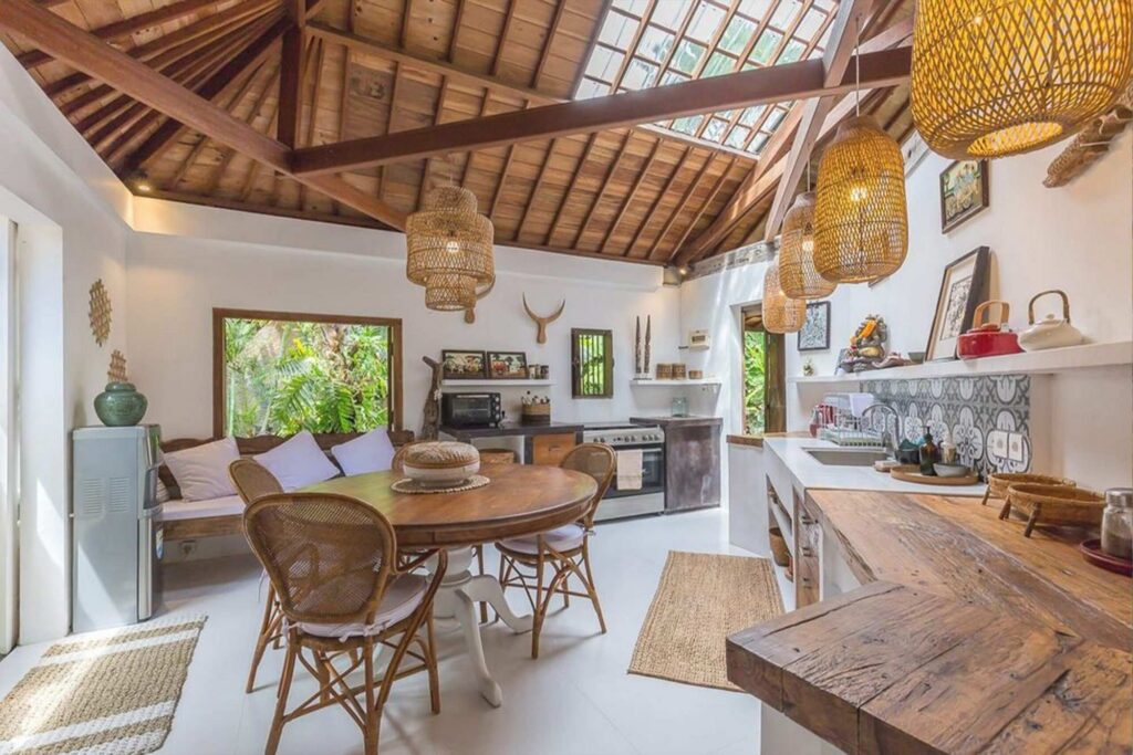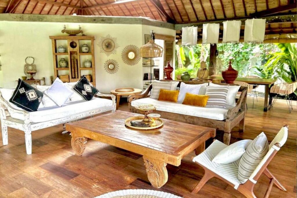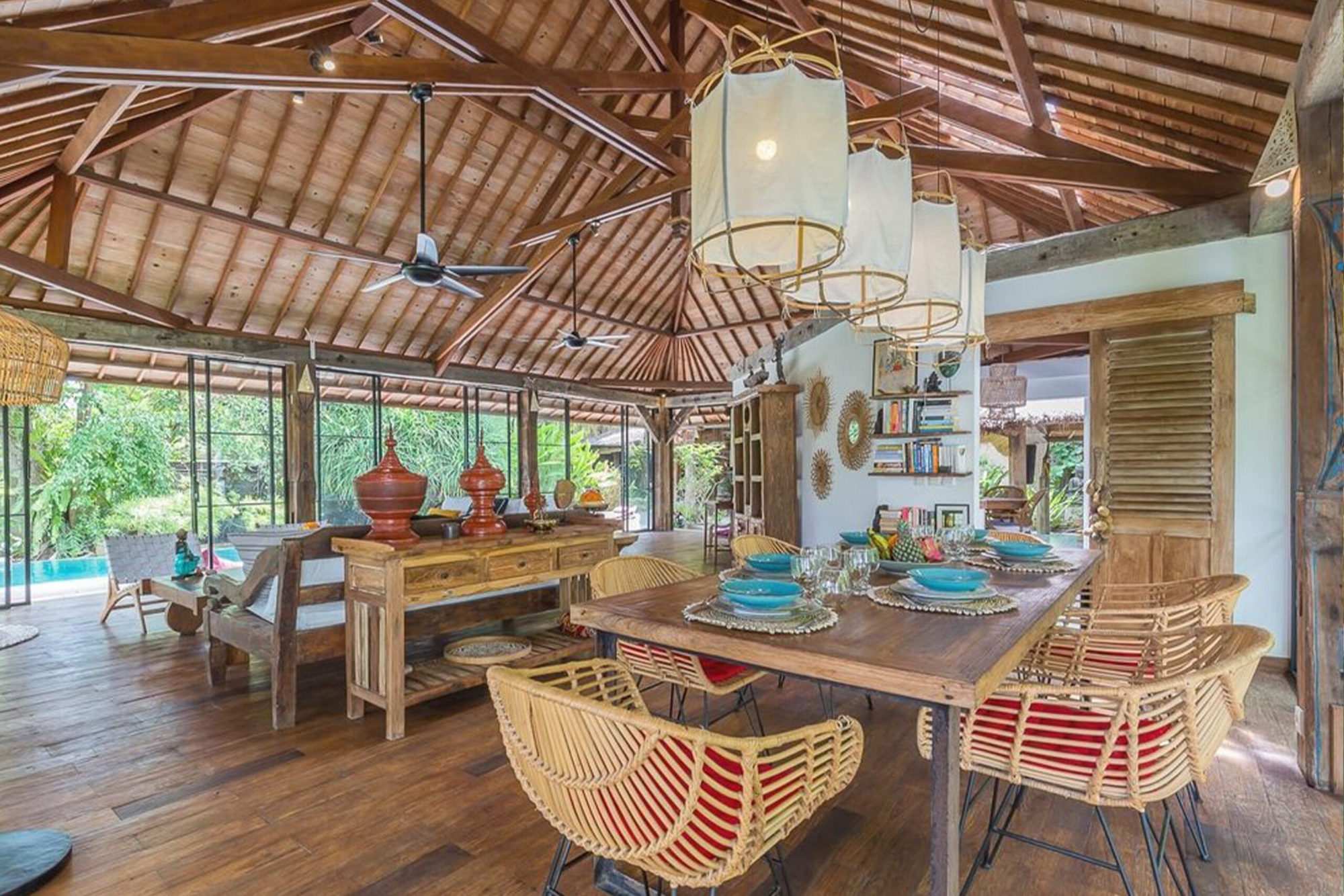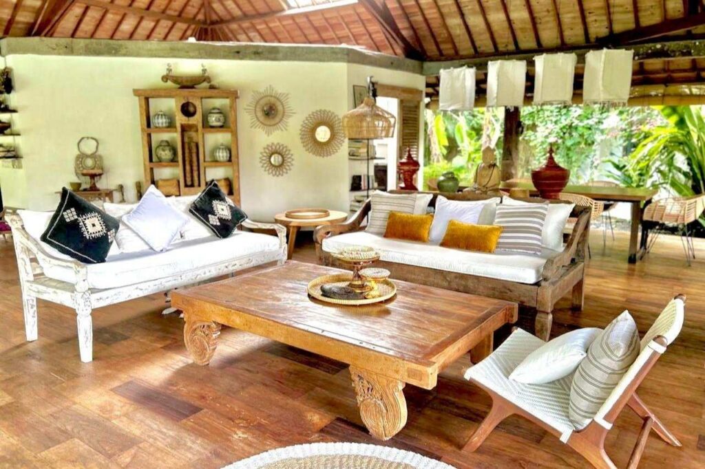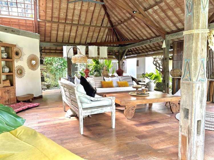 The beautiful five bedroom villa is on a quiet dead end road in Umalas making easy access to the airport for those going back and forth to the island for work elsewhere.