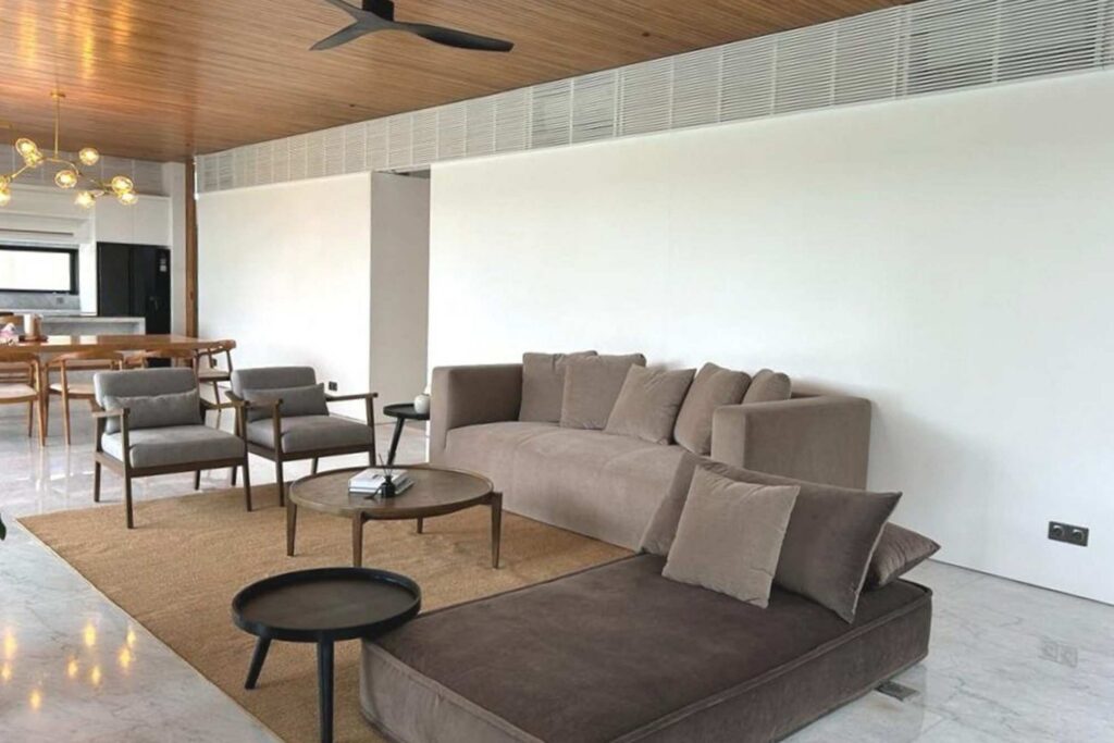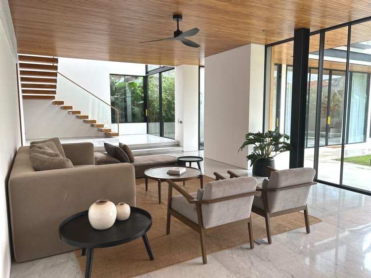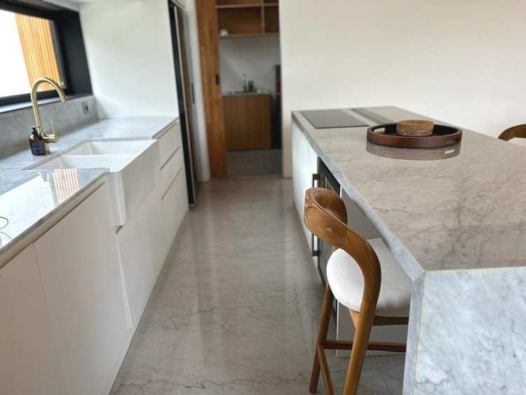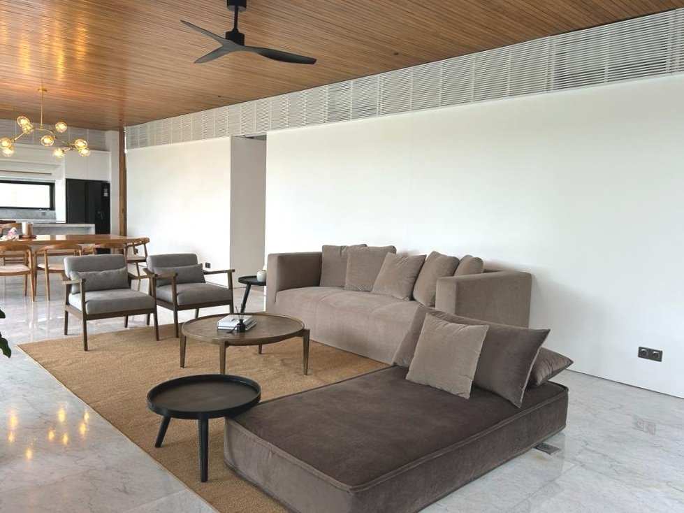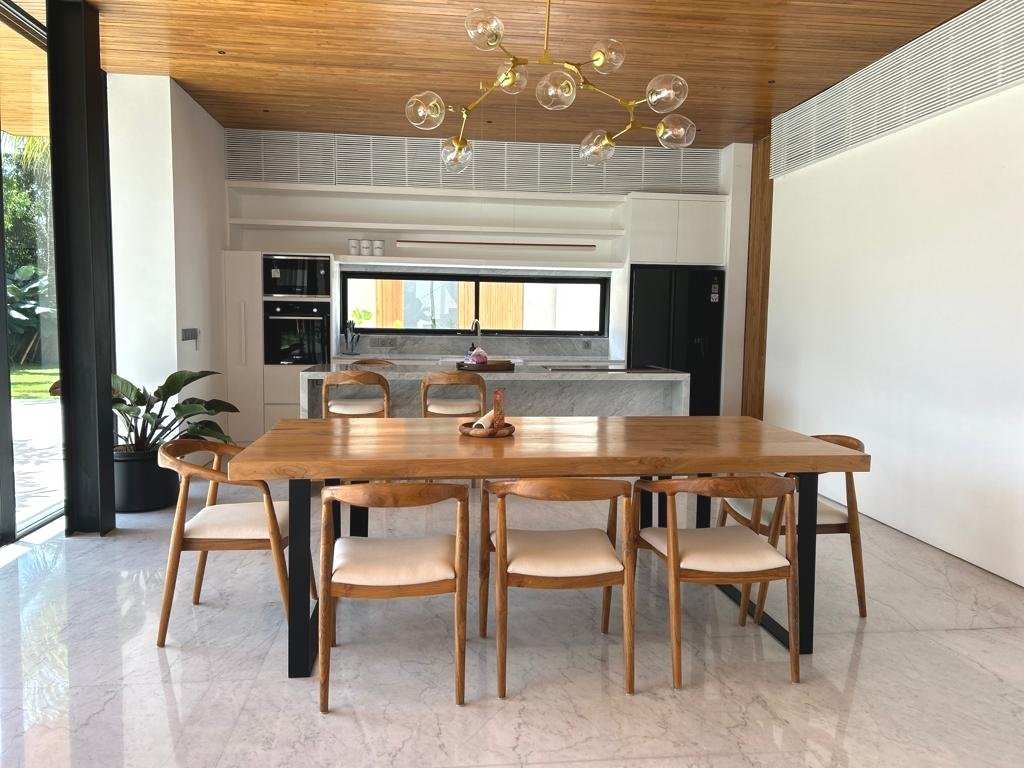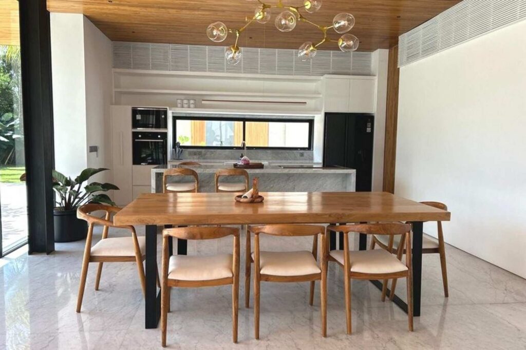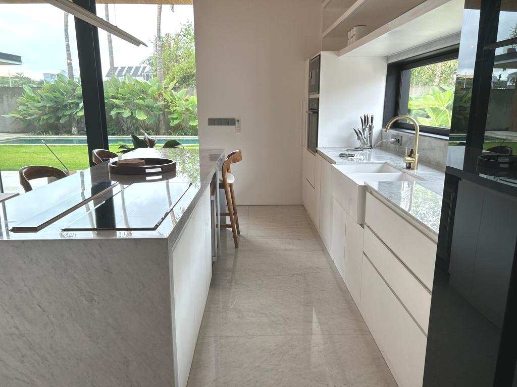Beautifully appointed furniture in chic materials make for a modern but homely feel throughout. The house has an enclosed and air conditioned living room and a kitchen with marble tops and high end appliances.