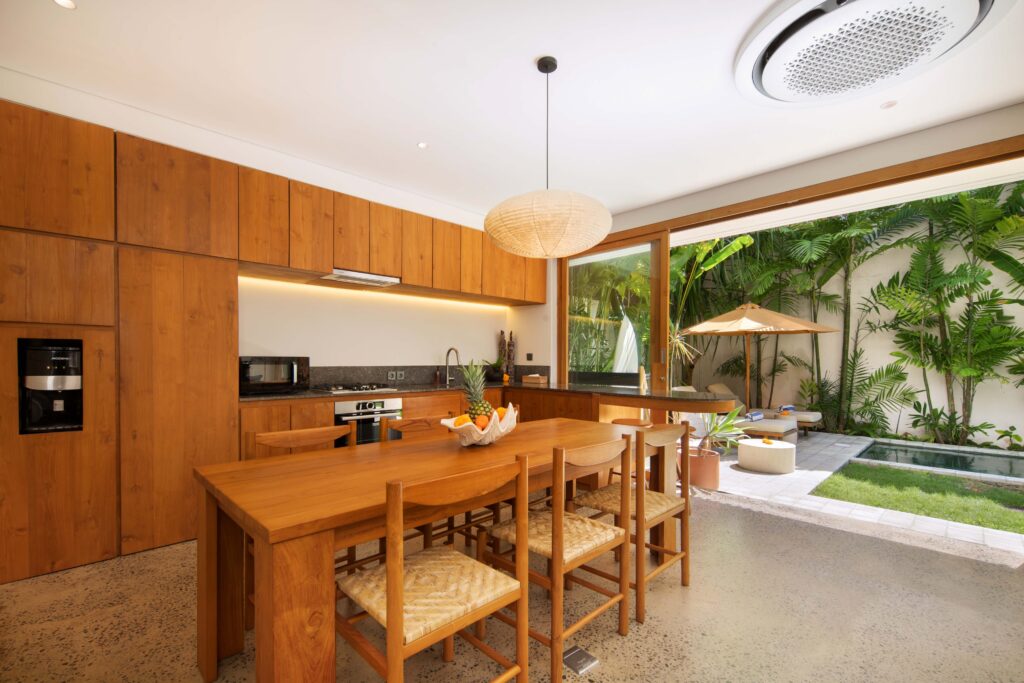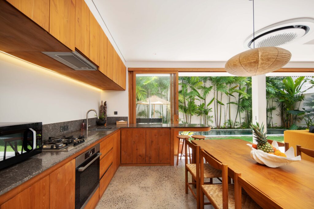 The fully equipped kitchen is finished with high-quality wooden cabinetry and sleek countertops, offering both functionality and refined style. Completing the property is a private swimming pool and beautifully landscaped tropical garden, providing a peaceful setting for relaxation, entertaining, or enjoying Bali’s year-round sunshine.