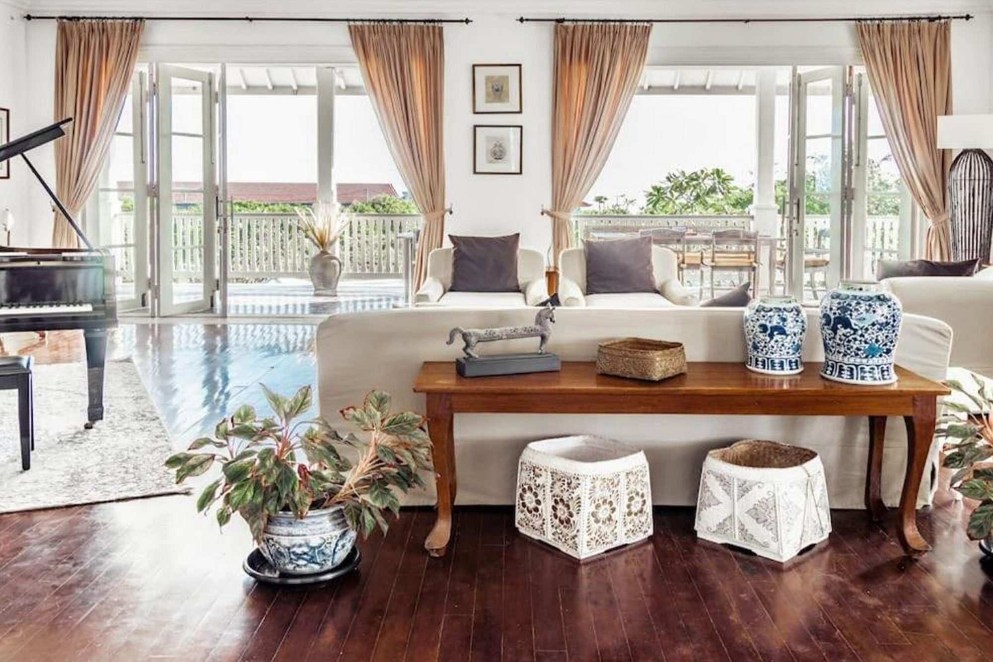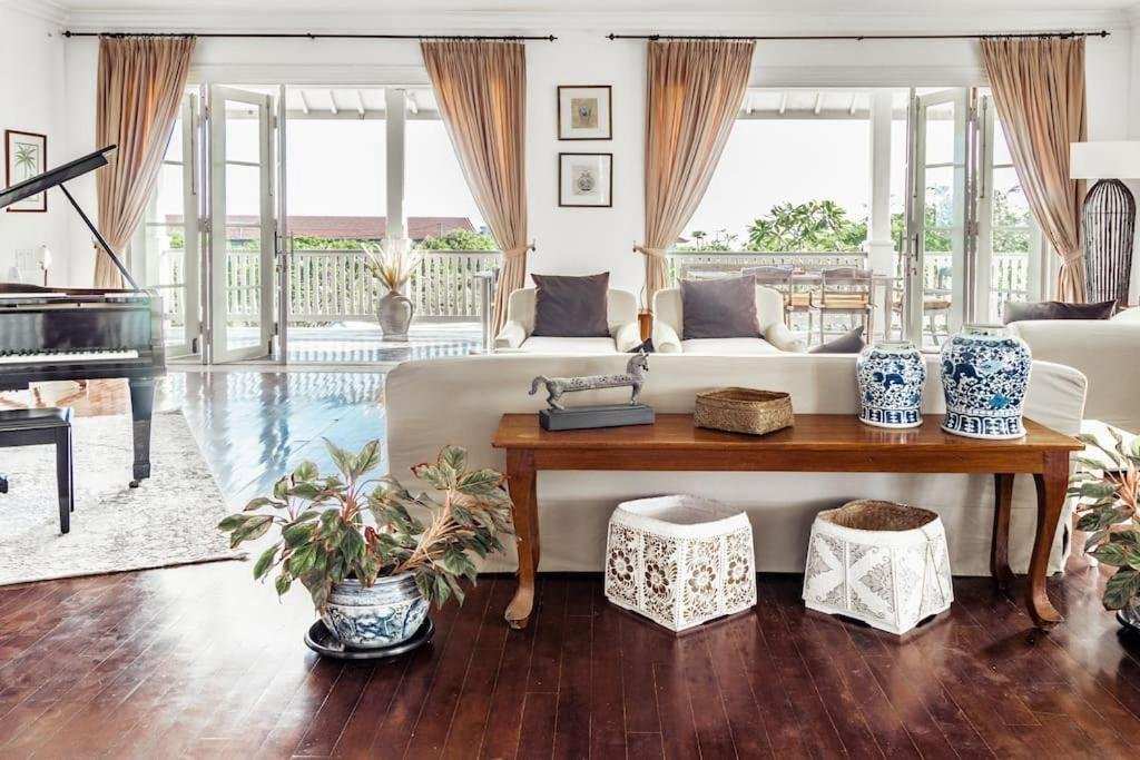 Sitting majestically within a lawned garden, this 6 bedroom villa is beachfront overlooking the waves, spans a massive 720 sqm with a 2700 sqm private garden and an additional 10,000 sqm of lush nature for complete privacy.