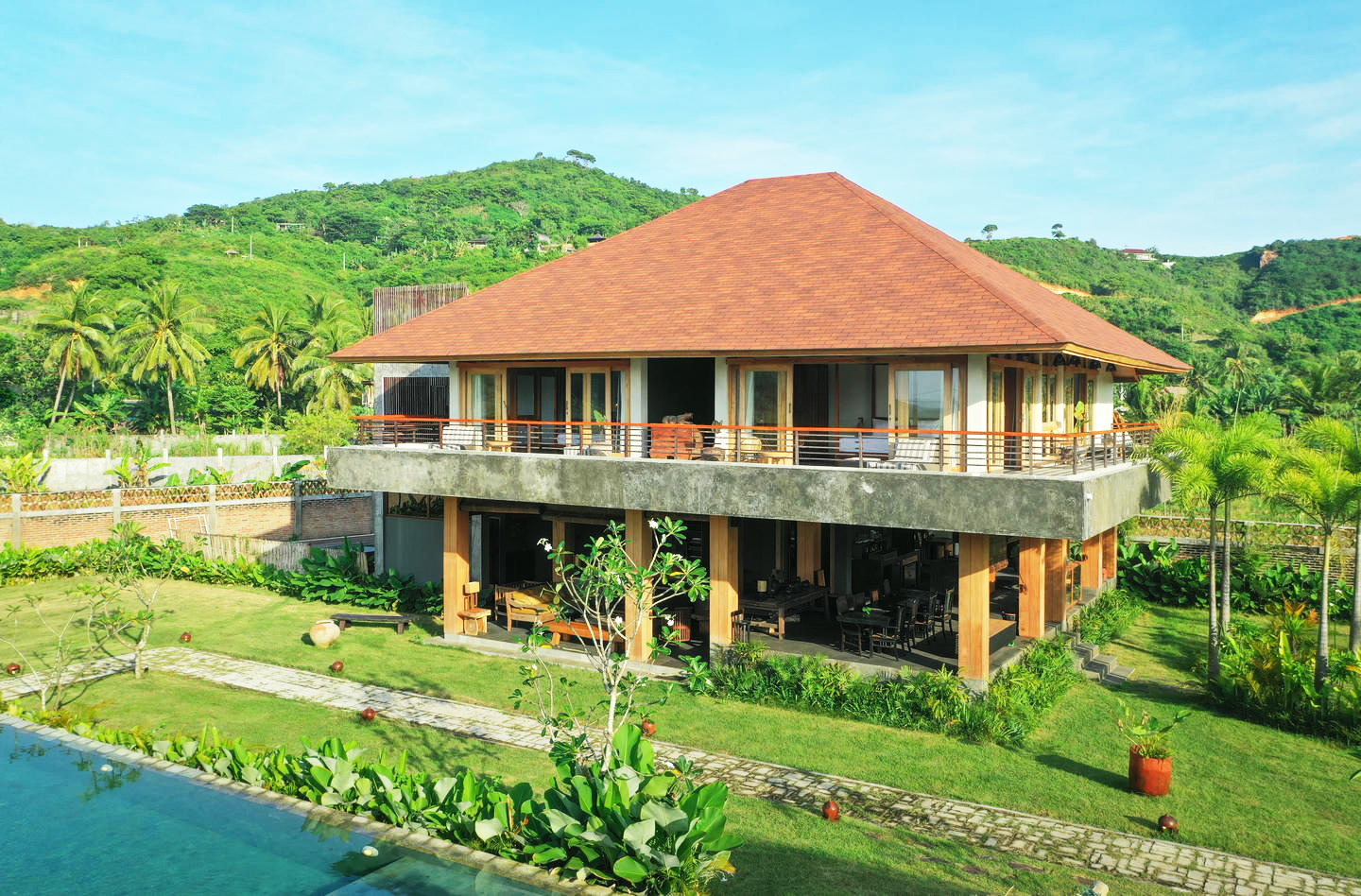 Tucked away in the pristine and scenic Areguling Valley of Lombok, this exquisite 5-bedroom villa represents a rare and lucrative investment opportunity. Boasting elegant design, lush tropical landscaping, and panoramic views, the property offers an idyllic blend of luxury and nature.
