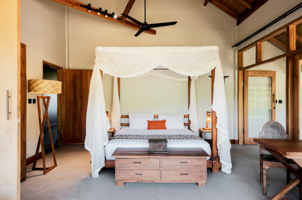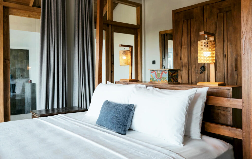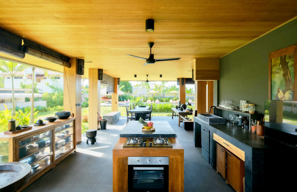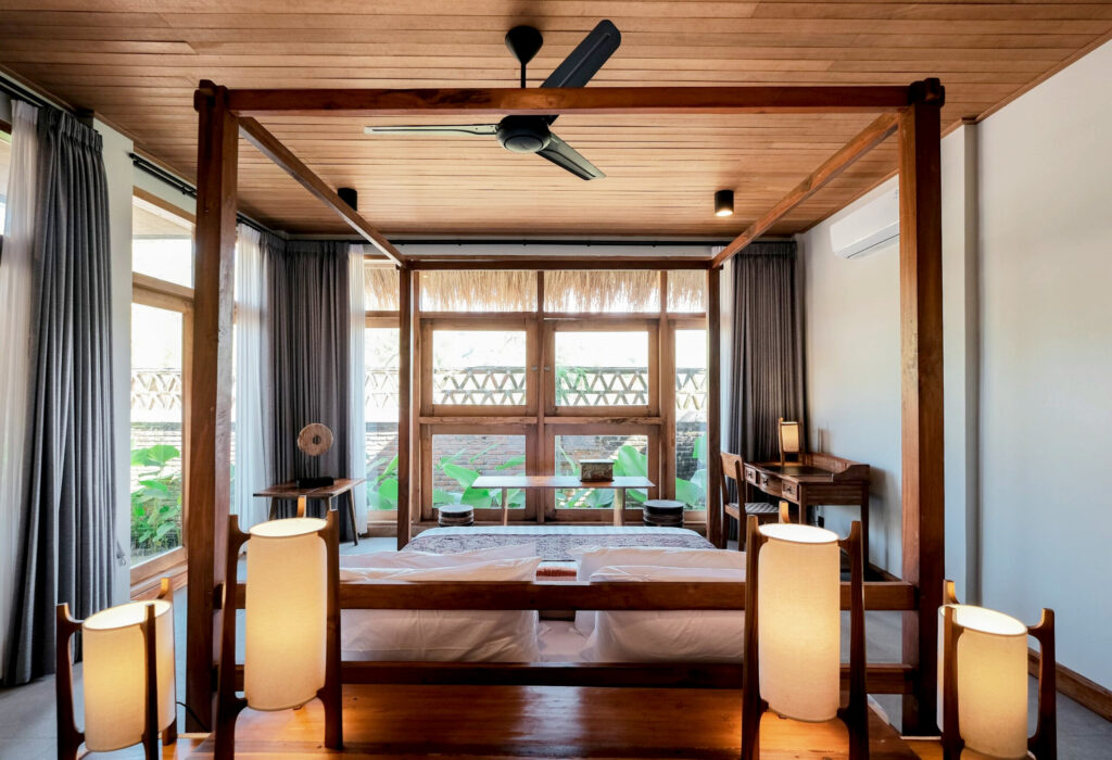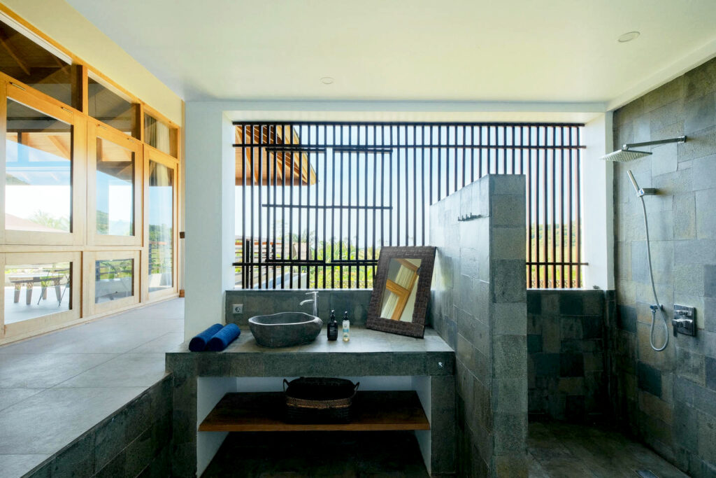 Each of the five serene bedrooms has been thoughtfully designed to offer privacy and comfort. Two rooms feature uninterrupted ocean views, while the others overlook rice paddies and jungle. All bedrooms are fitted with queen-sized beds and working desks, making them perfect for both rest and productivity.