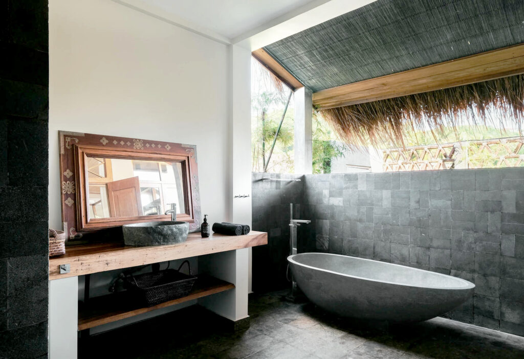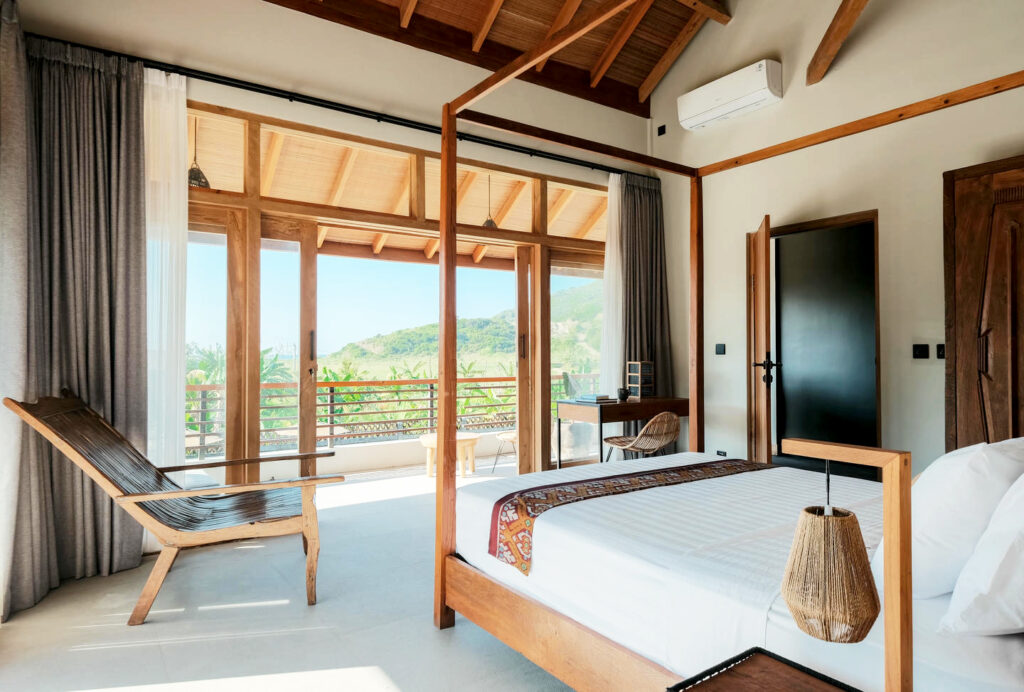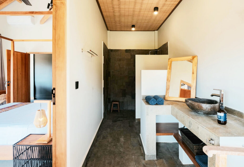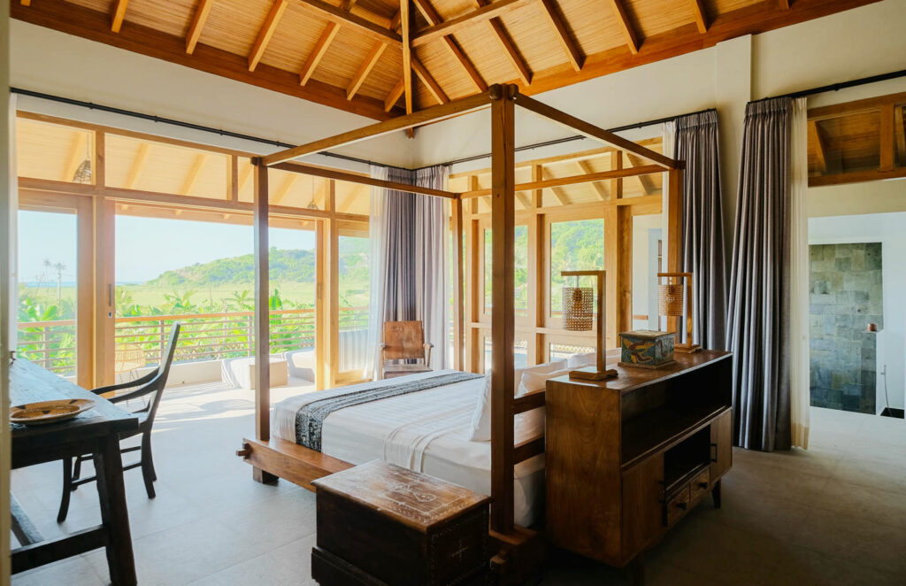 Each of the five serene bedrooms has been thoughtfully designed to offer privacy and comfort. Two rooms feature uninterrupted ocean views, while the others overlook rice paddies and jungle. All bedrooms are fitted with queen-sized beds and working desks, making them perfect for both rest and productivity.