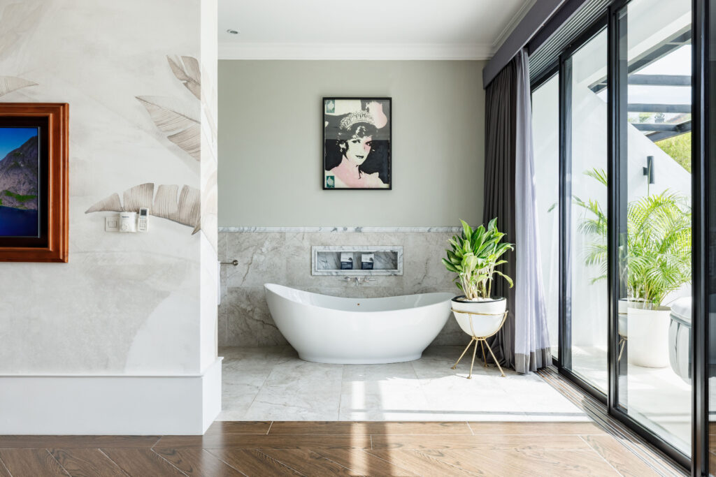 This exclusive residence boasts four opulent bedrooms, adorned with opulent walk-in wardrobes and offering unrivalled tranquillity. Revel in the opulence of spacious bathtubs, a state-of-the-art private cinema room, and a breath-taking infinity pool that seamlessly blends into the expansive garden space. Unwind and soak in the serenity, or retreat to the sophisticated study for a moment of quiet reprieve. A dedicated boot/surf room completes the ensemble, catering to the needs of active individuals. Particularly noteworthy is the exceptionally spacious master bathroom, offering awe-inspiring views that epitomize the epitome of indulgence.