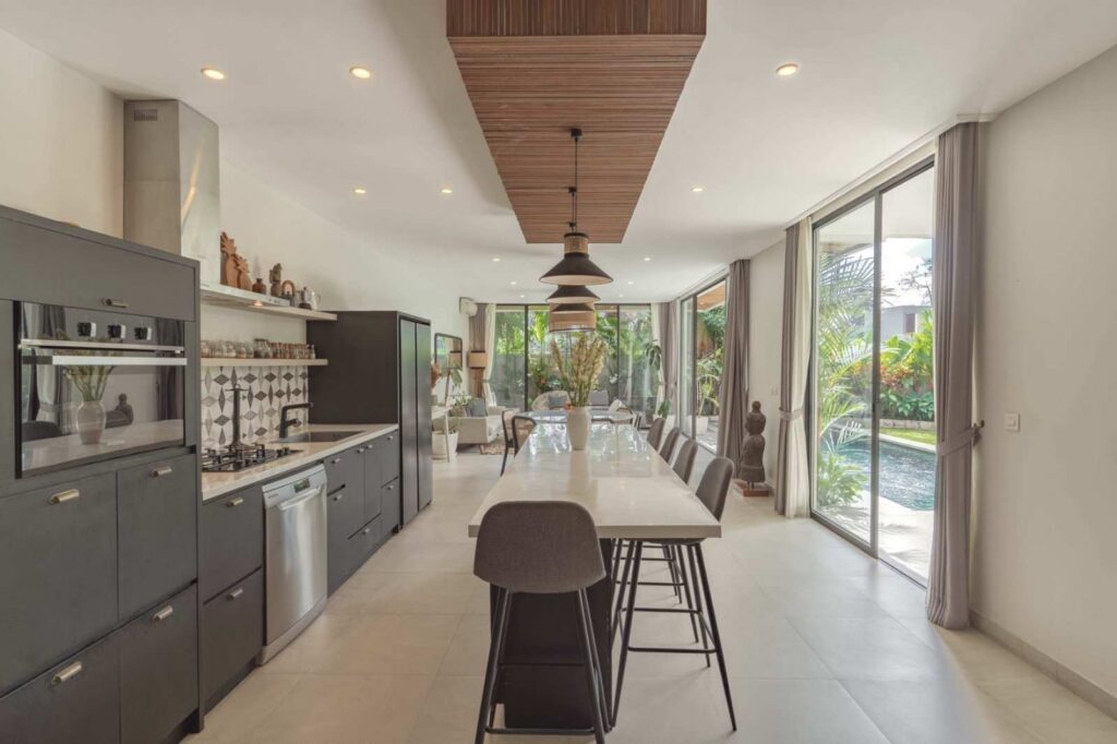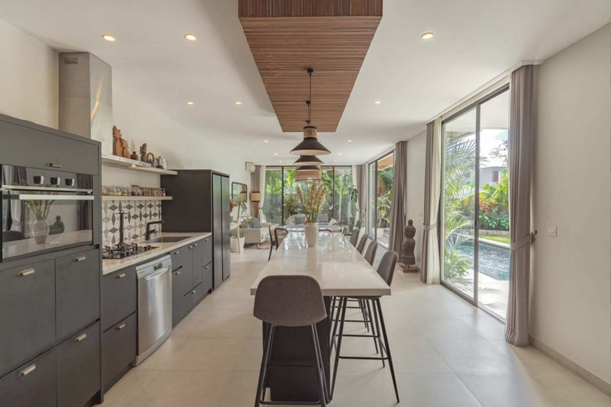 The villa boasts an elegant design with floor-to-ceiling windows that fill the living spaces with natural light and offer a seamless connection to the outdoors. The centerpiece of the property is the private pool, surrounded by lush greenery and a meticulously maintained garden, creating a serene oasis to relax and unwind. The villa also enjoys breathtaking views of the iconic Berawa rice fields, adding a touch of tranquility to its modern ambiance.