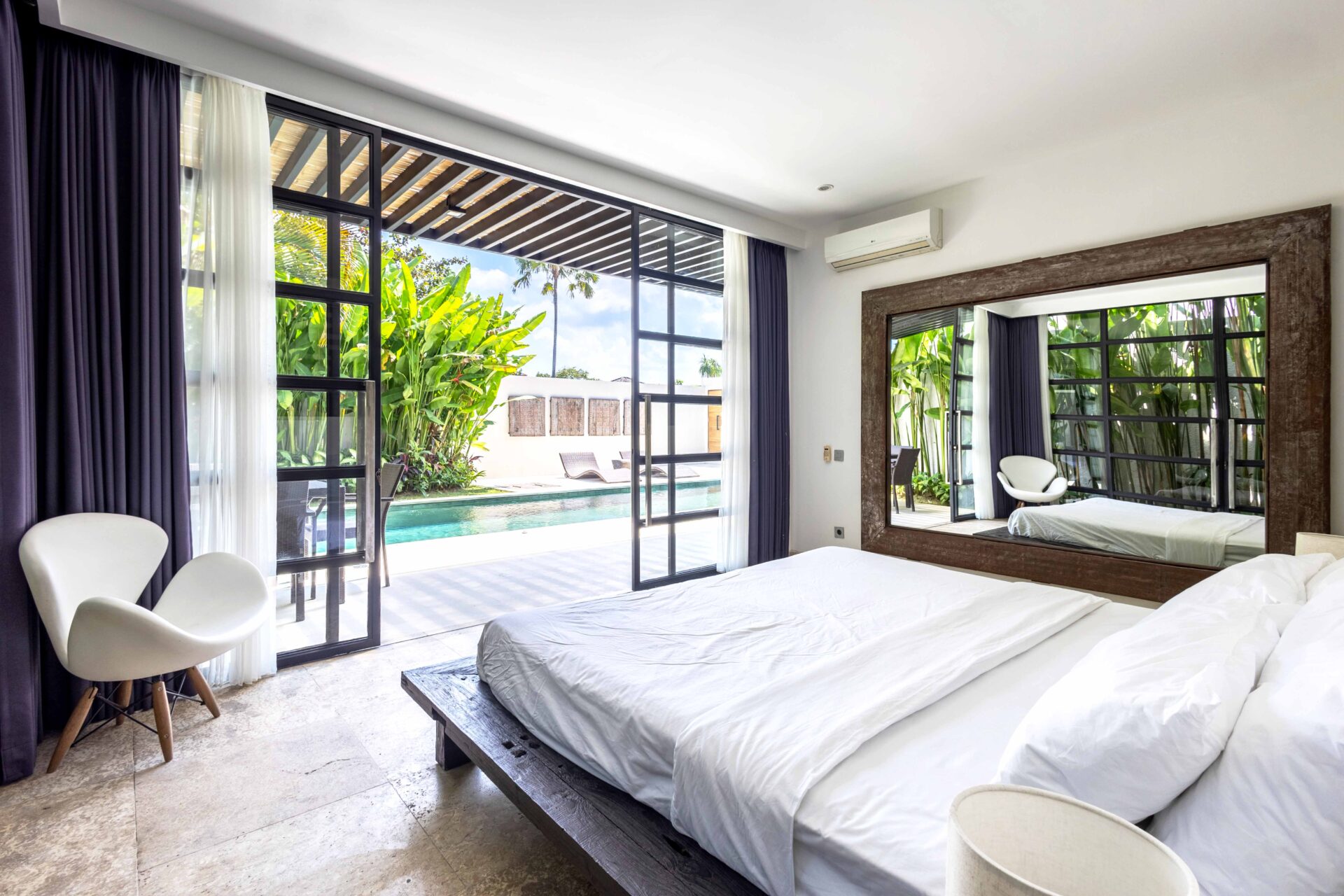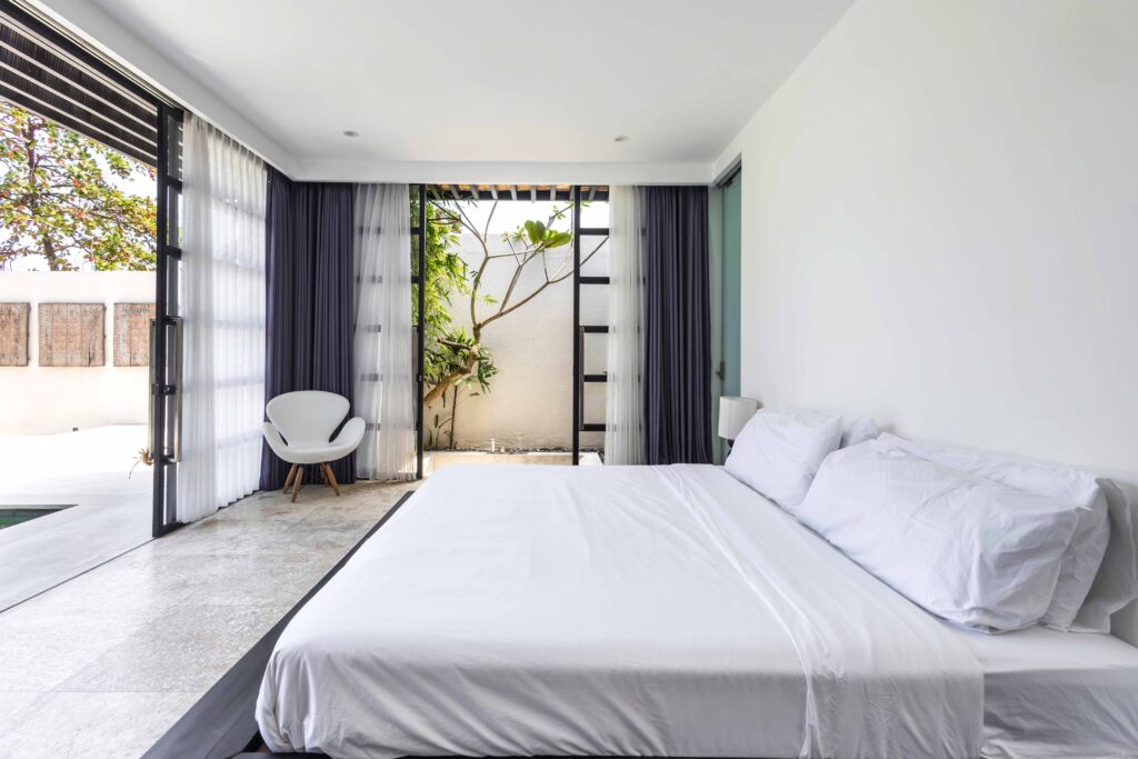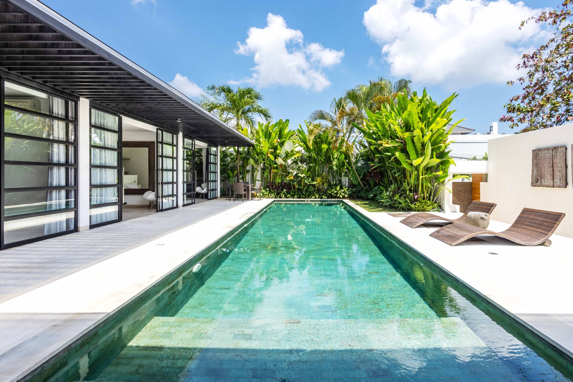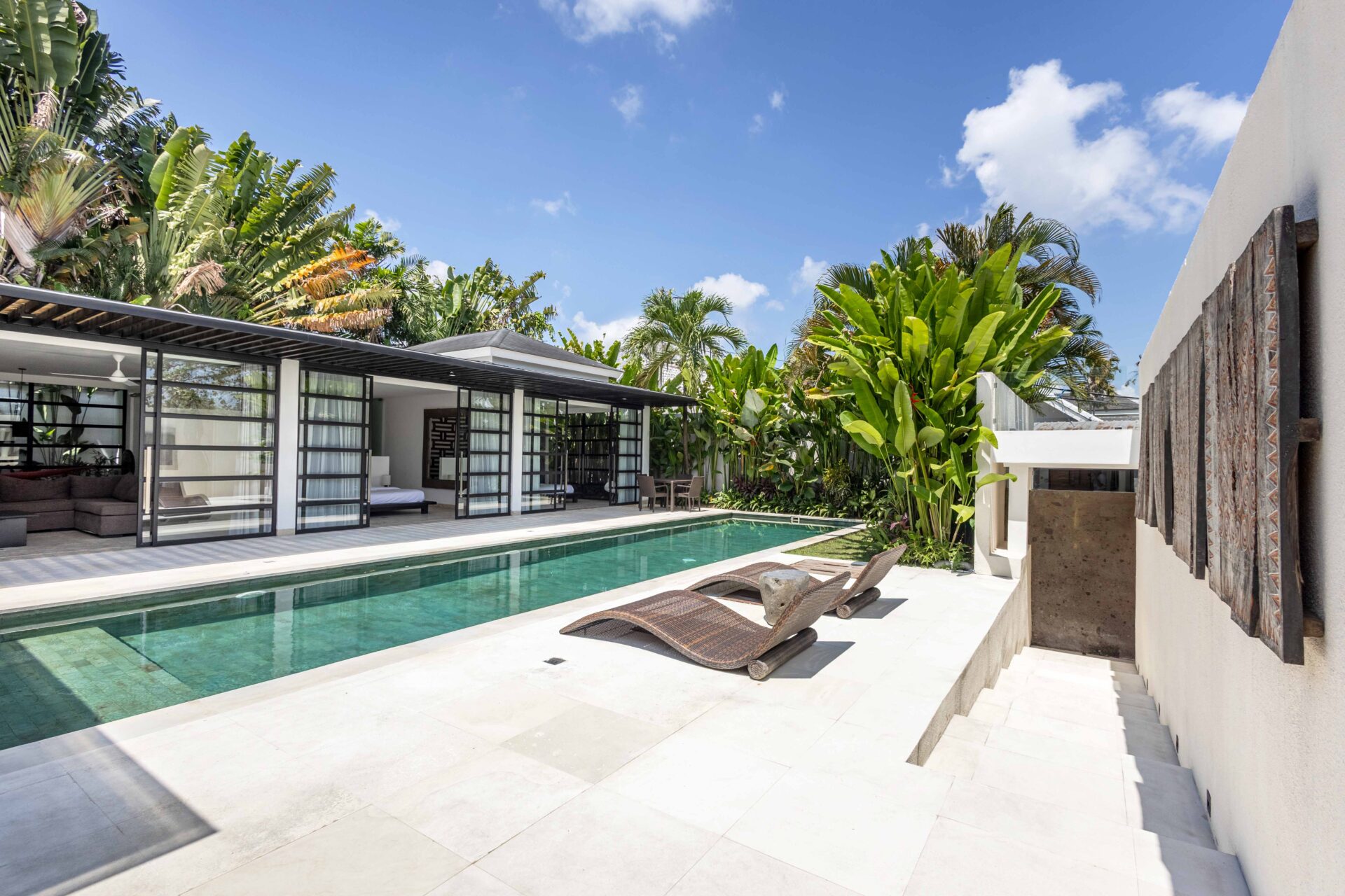 Villa Panda sits on 551.5 sqm of elevated land and includes 214 sqm of indoor space, with three bedrooms opens directly to the pool and includes built-in wardrobes and ensuite bathrooms with rain showers, bathtubs, double vanities, and quality fittings.