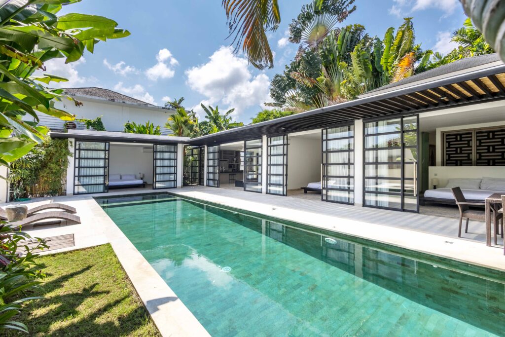 Located at the intersection of Bumbak and Berawa, this single-level leasehold villa combines modern tropical architecture with subtle Japanese design elements that offers a practical and comfortable layout suitable for both family living and use as a rental property.