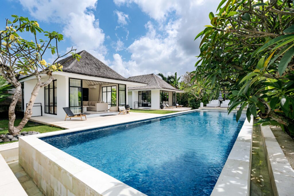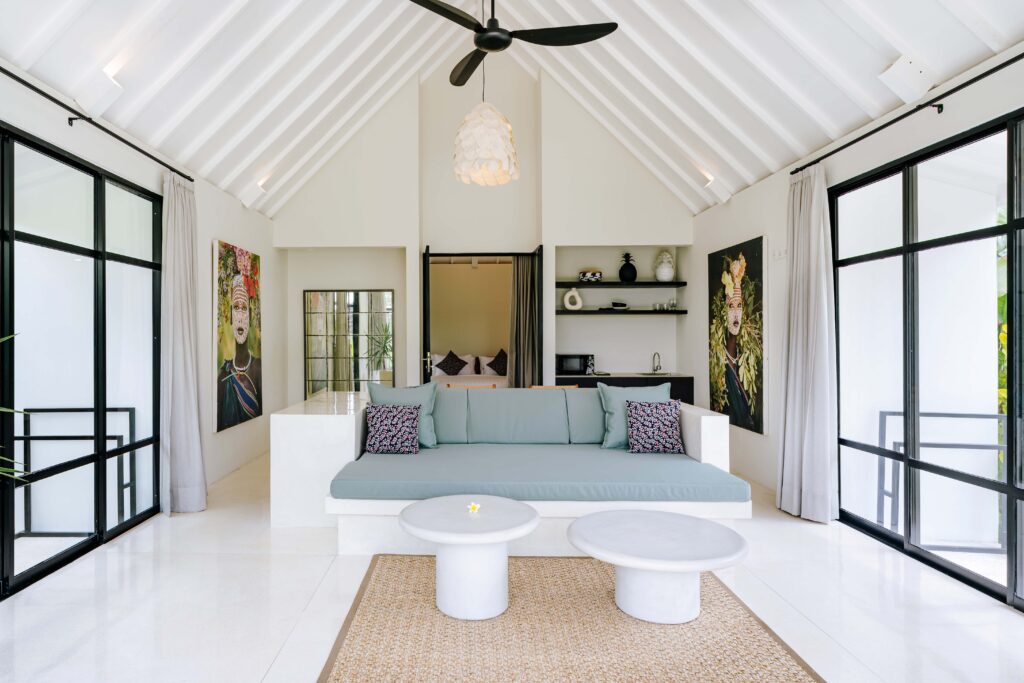 Located in the scenic region of Seseh, Villa Raki comprises four buildings and an open-sided dining gazebo. Surrounded by rice fields and neighboured by Balinese village life, the villa offers a serene setting away from the crowds but still within easy reach of the trendy neighbourhood of Canggu (about 15 minutes from the villa). The ruggedly beautiful and often near deserted Seseh Beach is just a five-minute drive away.
