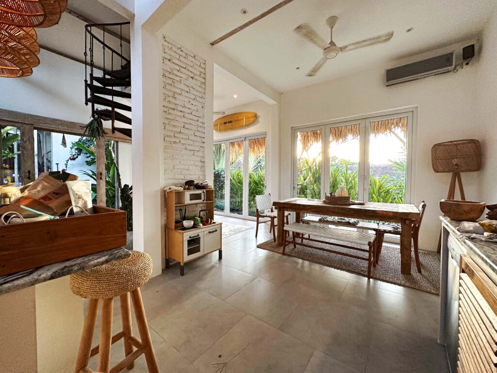 High vaulted ceilings in both main houses that have scope to be joined together adding three further bedrooms in one and a fourth in the other, which on a freehold sale there is scope for investment to maximise it as a fabulous family home for an end user wanting to be equi-distance from Green School or the Canggu Schools for little ones. Equally it would be an interesting property investment for somebody looking to expand their portfolio given it would be well received in the high end long term family yearly rental market, or on a monthly basis with capability of being separate dwellings or a 5 to 7 bedroom villa for rent as a whole.