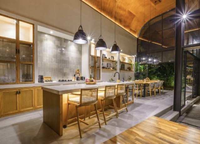 The villa boasts a modern, fully equipped kitchen, perfect for culinary enthusiasts. Step outside to your private oasis, where a sparkling outdoor swimming pool invites you to unwind and soak up the sun.