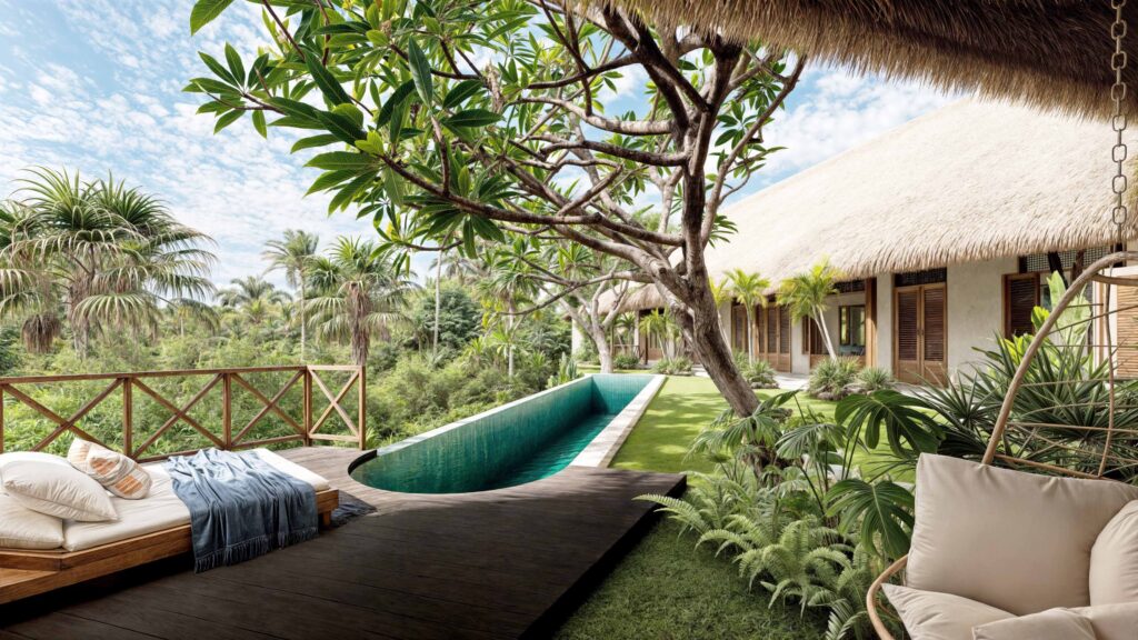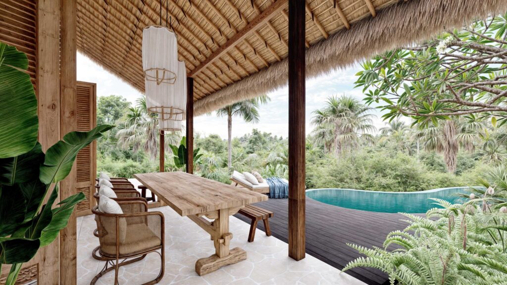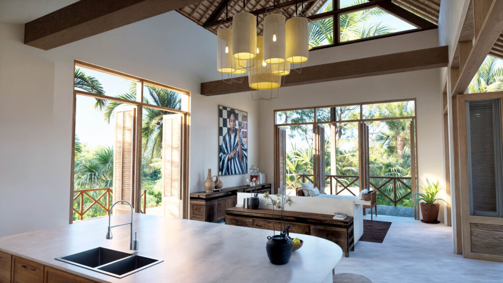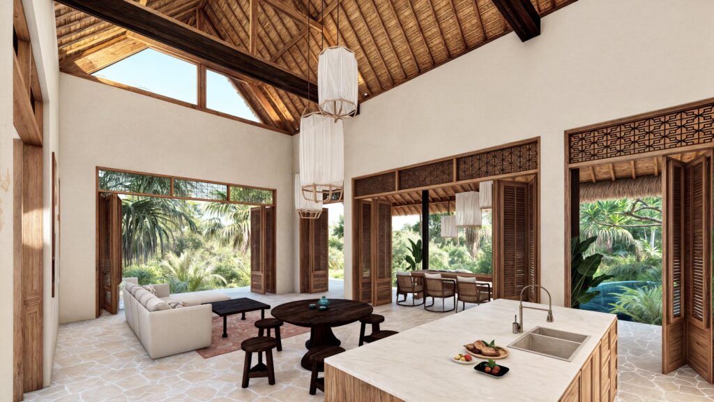 This exquisite property boasts 4 spacious bedrooms and 4 modern bathrooms, perfectly designed for comfort and relaxation. Nestled amidst lush greenery, the home offers breathtaking jungle views. Soft earthy colour palettes with exquisite design accents and materials make for a different feel morning to night when under soft lighting looking out to the uplit landscaped gardens.