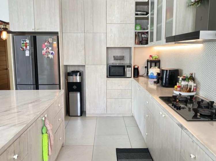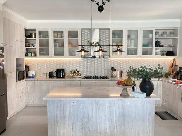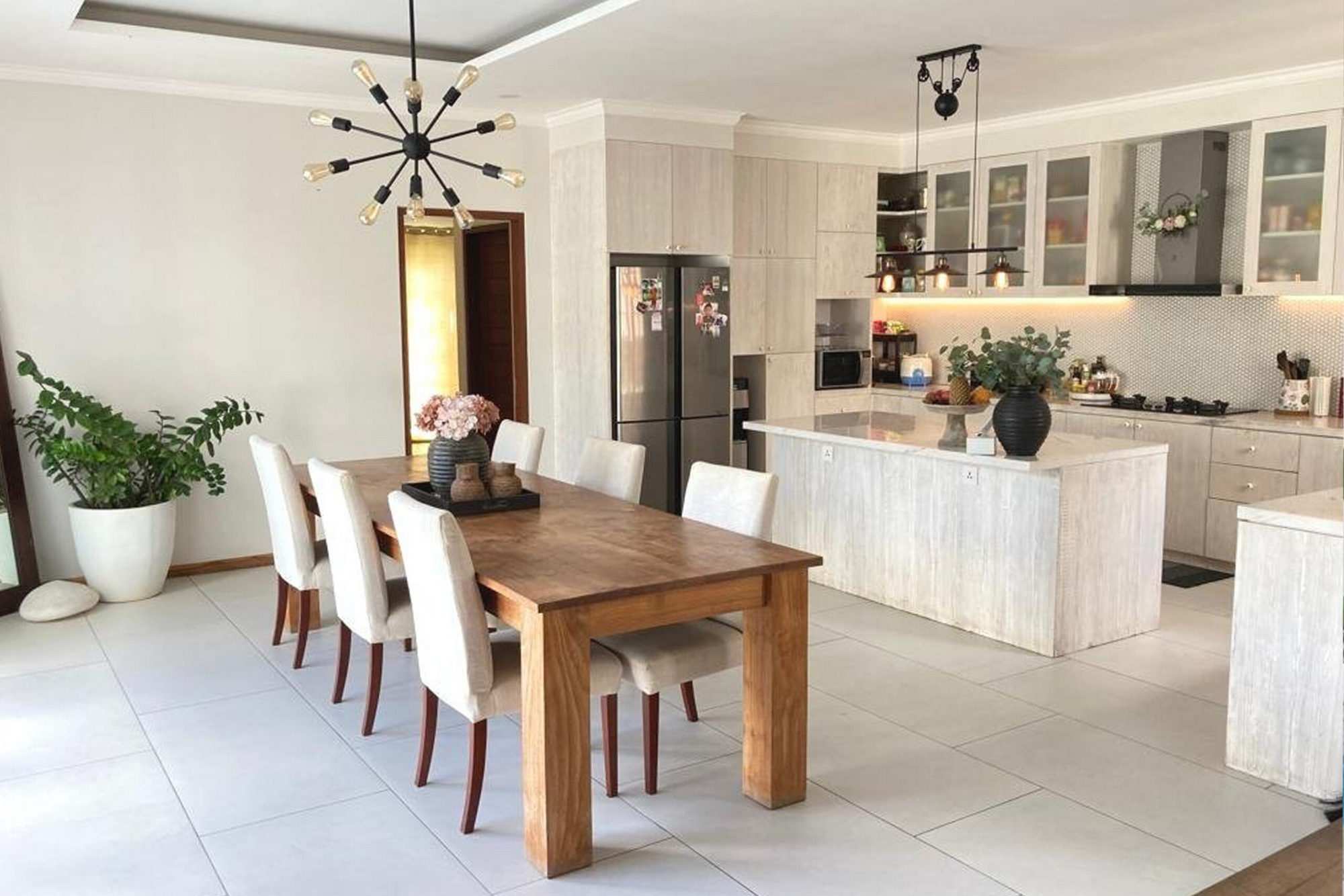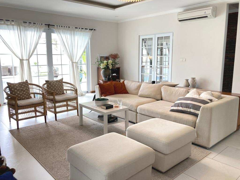 The house is a family home, the open plan kitchen being at the heart of it overlooking the pool with an inviting sitting room for movie nights and rest and relaxation in air con after a long day.