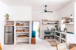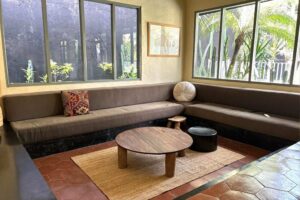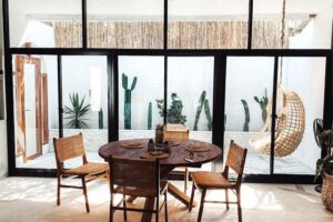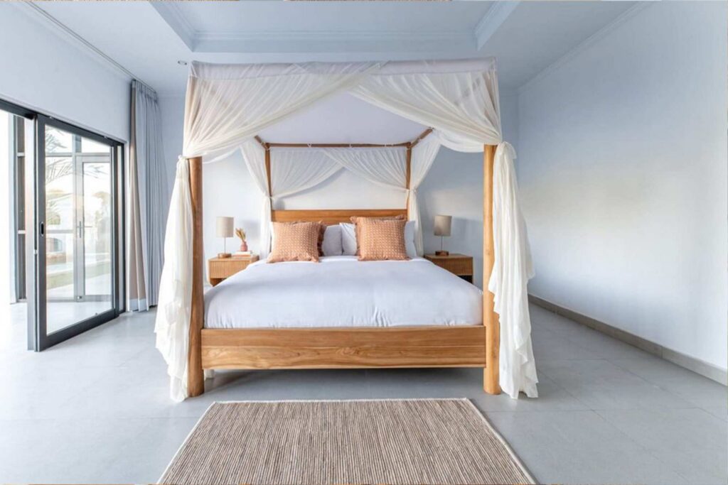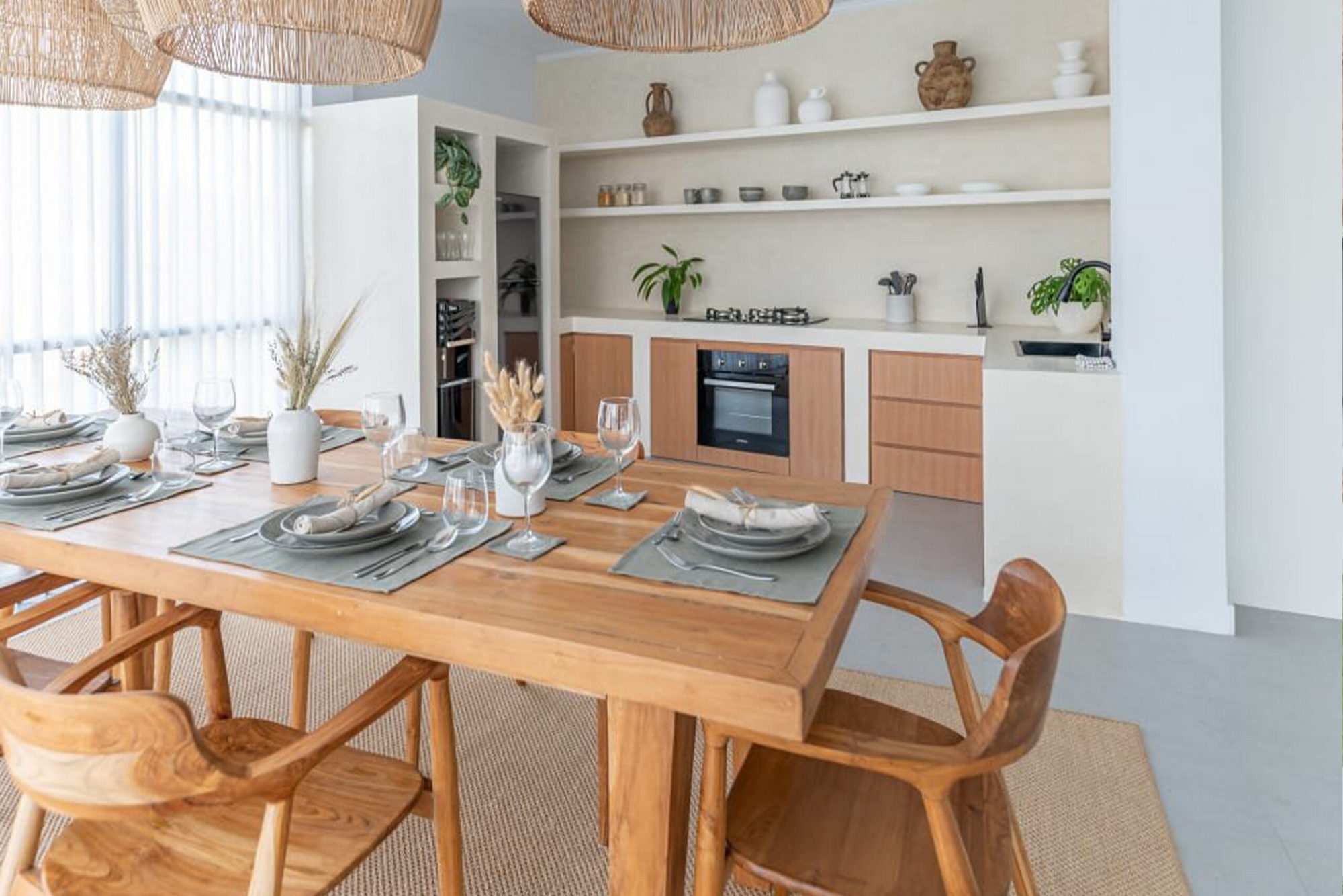 Step into the open-plan living space, where a fully equipped kitchen and dining area create the perfect setting for relaxing or entertaining. The airy layout, combined with natural light, enhances the villa’s inviting atmosphere, making it a true home away from home.