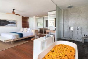 Villa Teak Dua stands as a testament to the perfect fusion of “real Bali” luxury and tranquil beauty. This enchanting villa has a great balance of connecting rooms and private guest suites meticulously designed to offer comfort and serenity.