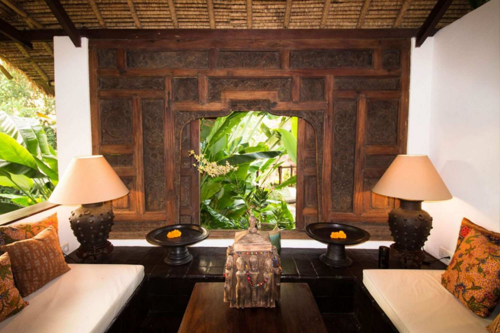 On 22 are of lush, mature tropical gardens the villa feels extremely private, with ample space for all and little corners to relax and enjoy the jungle feel. An infinity pool to laze around in the day, a massage room to enjoy a treatment before bed to ensure a wonderful sleep. The sitting room and dining area are open air and breezy and there is an enclosed TV room giving easy and comfortable living with the nest of both worlds to all.