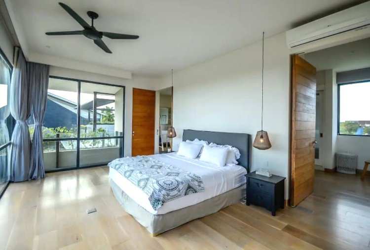 The generous master bedroom majestically floats above the garden with rice fields in the distance and has a bright and large bathroom with ample storage in the dressing room. Two further bedrooms, all with their own en- suites and extensive cupboards throughout are a rarity as they are all interconnected from the main house whilst one more bedroom is accessed from the garden.