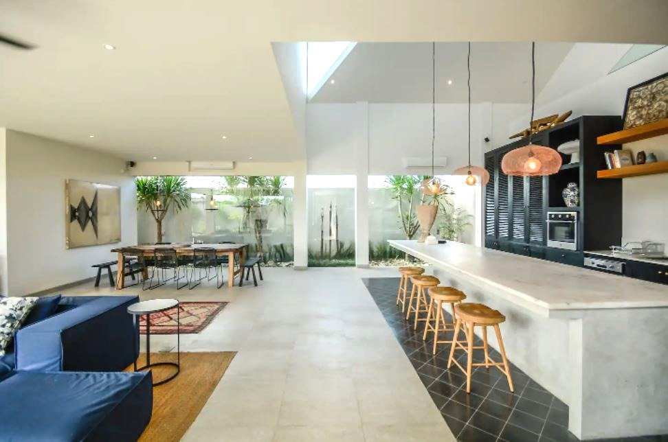 One of five recently built villas on a private and quiet road with 24 hour security in Berawa’s most popular spot for a stroll to Finns Beach as well as the international schools of the area. This home was built around family living and easy entertaining with sliding doors to all rooms to keep the breeze flowing or equally the air con cooling when required.