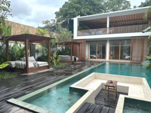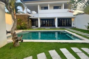 Stepping stones from Pererenan beach, yet quietly situated down a dead end road, this comfortable modern villa has 5 to 6 bedrooms over 3 floors, outlayed like a proper family home.