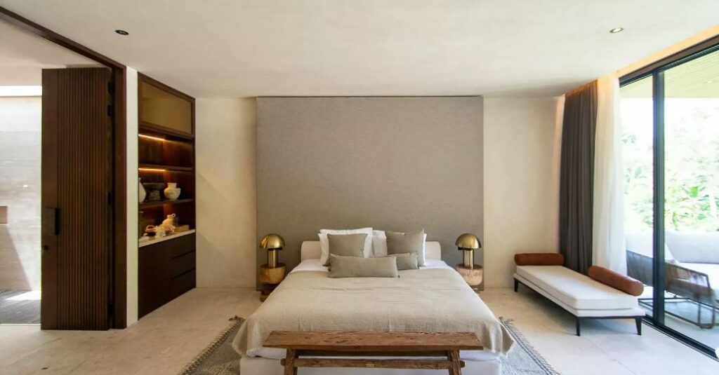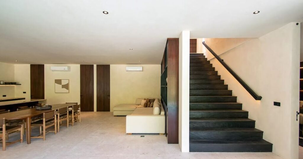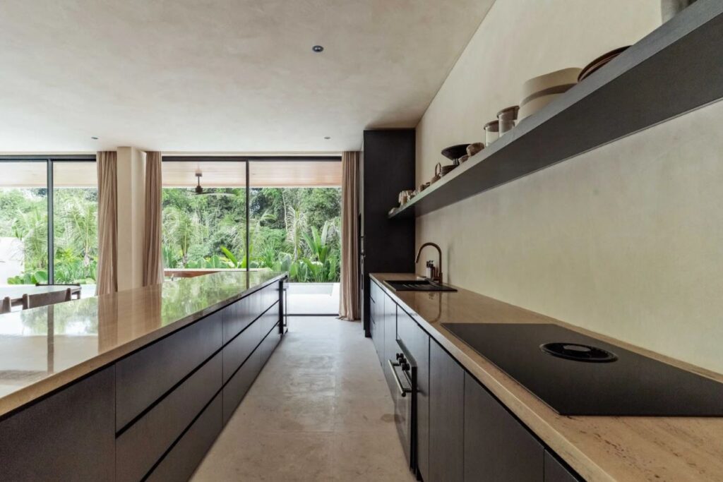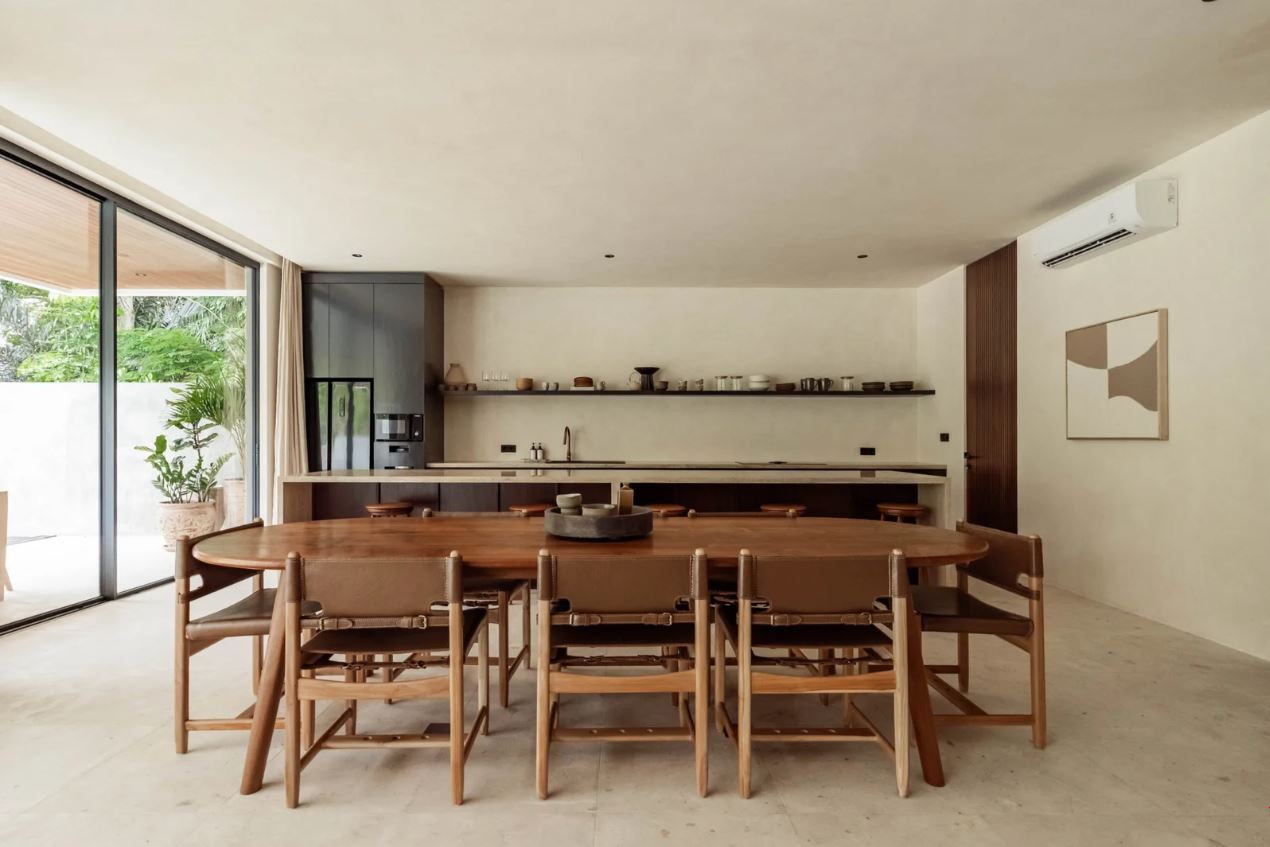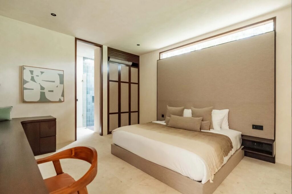 Designed with a modern Japanese aesthetic, the villa features four beautifully appointed bedrooms, each with its own ensuite bathroom, offering comfort and seclusion for every guest. The interior showcases an elegant and harmonious layout, where every detail is thoughtfully curated. A spacious open-plan living area flows into a fully equipped kitchen, complemented by a secondary professional-grade kitchen on the upper level—perfect for hosting or catering to any culinary preference.